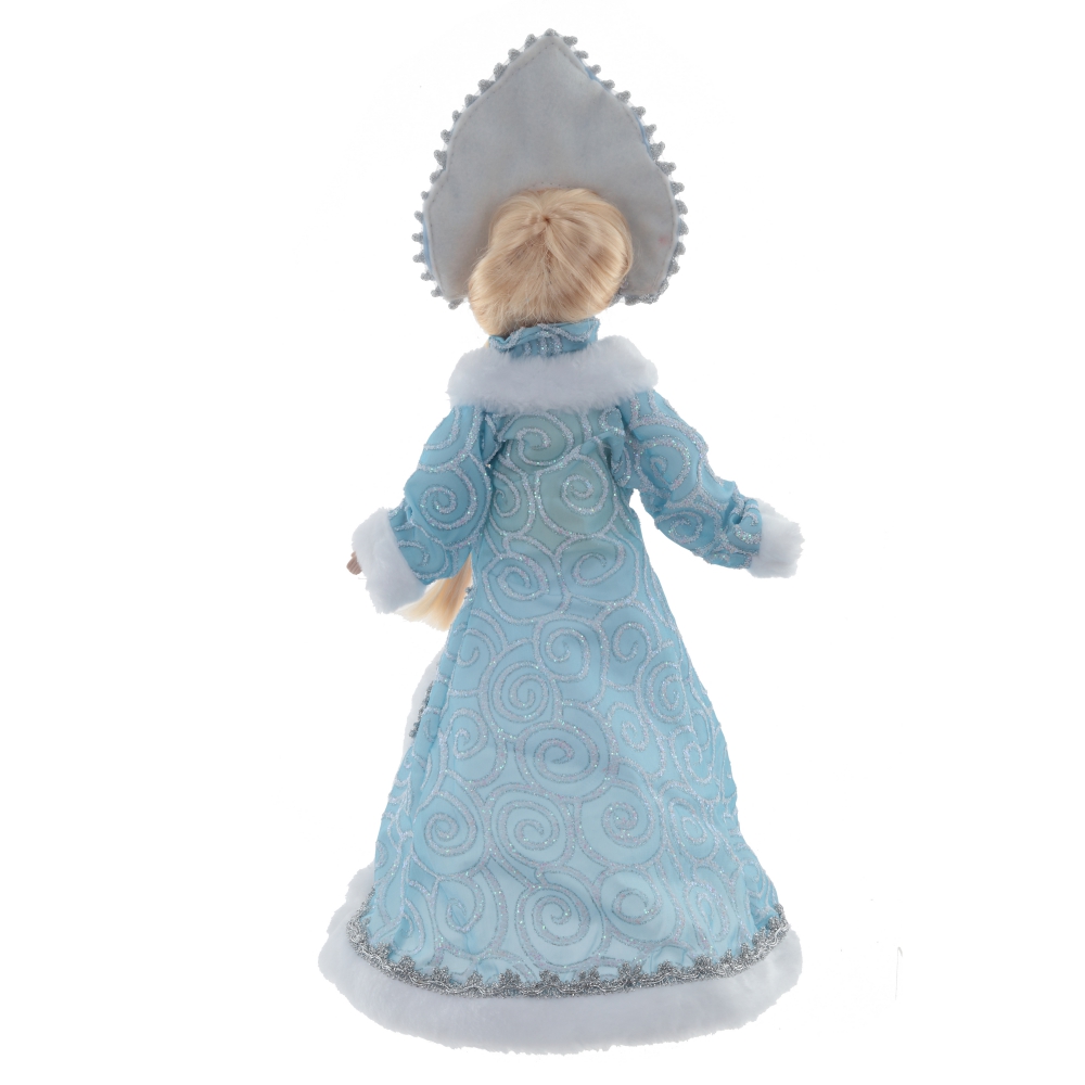 Снегурочка с емкостью для конфет, l32 w32 h54 см. Материал: Полимерные материалы/Текстиль Снегурочка в роскошном голубом наряде с меховой отделкой и кокошнике будет прекрасным подарком к Новому году. Ее можно поставить под елку, а так же использовать как милый подарок. Вес, кг: 0. 404