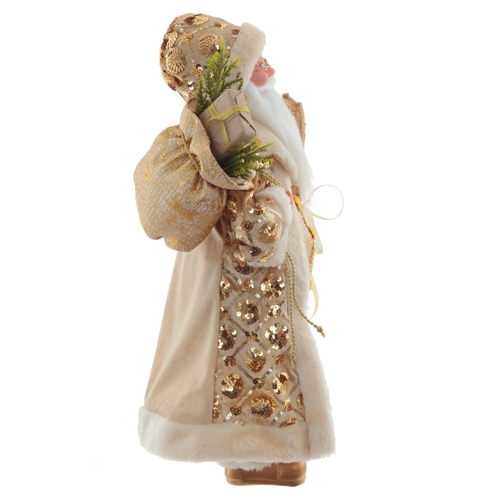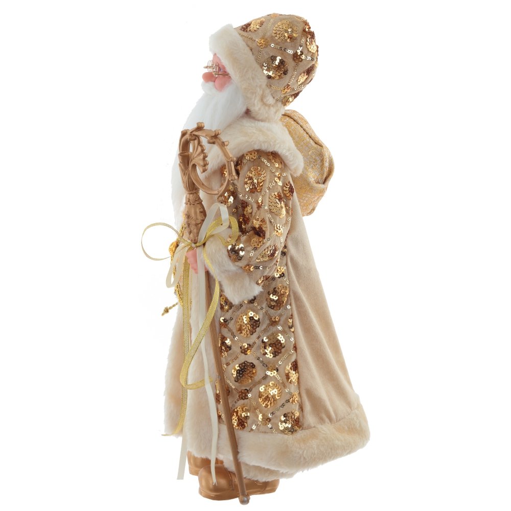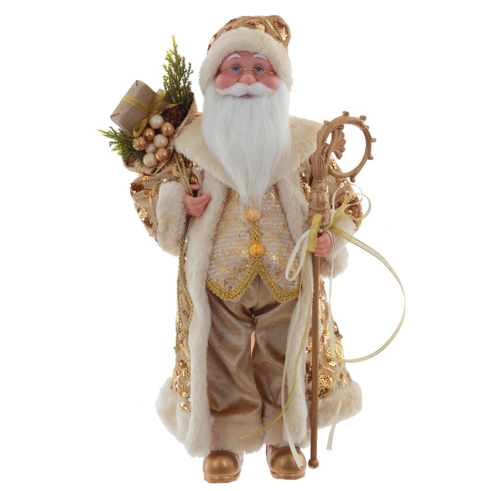 Дед мороз, l30 w17 h48 см. Материал: Текстиль/Полимерные материалы Дед Мороз с волшебным посохом и мешком подарков. Очень нарядная, богато украшенная шуба и большая белая борода придают Деду Морозу величавый внешний вид. Вес, кг: 0. 575