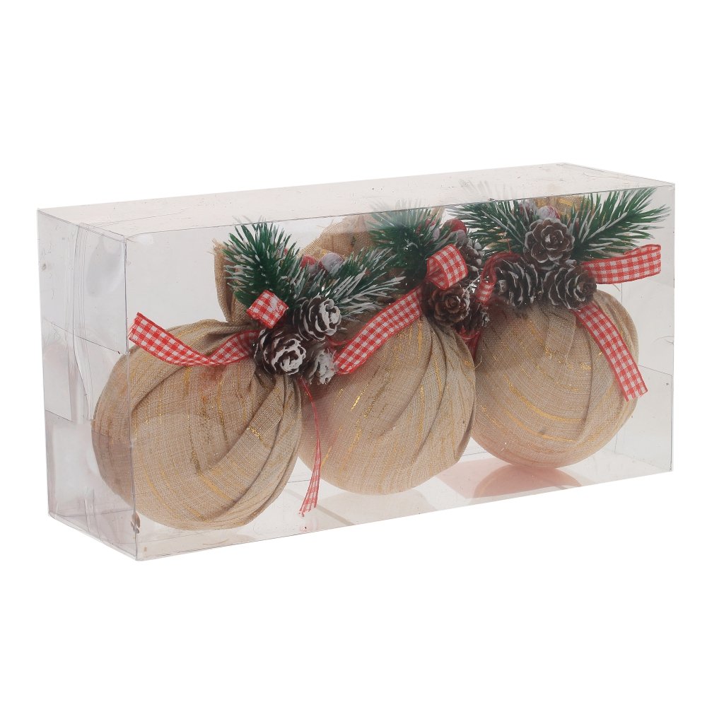 Набор из 3шт украшение новогоднее шар, D 7.5 см, L23,5 W8 H11,5 см
