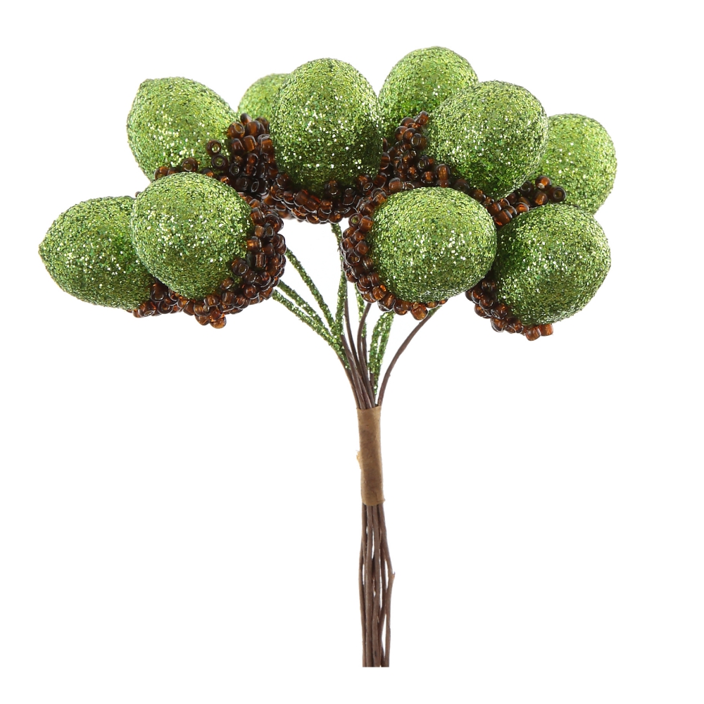 Изделие декоративное желудь, l8 w8 h11 см. Материал: Полимерные материалы/Металл Желуди на проволоке, присыпанные инеем - потрясающий аксессуар для композиций, а так же для оформления праздничных открыток и подарков. Вес, кг: 0. 021