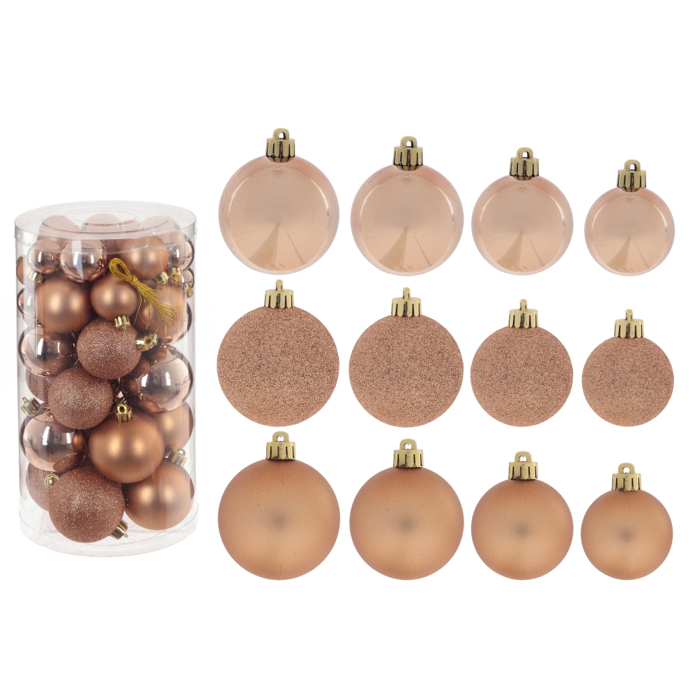 Набор из 24шт украшение новогоднее шар, d 6 см, l14 w14 h26 см. Материал: Полимерные материалы Набор из 24-ти елочных шаров выполнен в единой цветовой гамме. В составе набора - пластиковые шары разной фактуры - глянцевые, матовые и с глиттером. Прекрасно смотрятся в убранстве новогодней ели. Поставляются в прозрачной пластиковой упаковке. Вес, кг: 0. 235