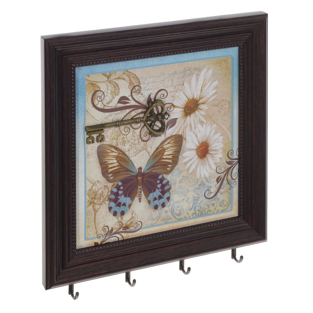 Ключница, l27 w2,5 h29 см. Материал: Дерево/Полимерные материалы/Металл Ключница настенная открытого типа в багетной раме с четырьмя металлическими крючками, украшенная ярким рисунком. Ключница – предмет не только красивый, но и функциональный, поэтому ей найдется место и в офисе, и в квартире, и в загородном доме. На задней стенке ключницы есть крепления для подвешивания на вертикальную поверхность. Вес, кг: 0. 533