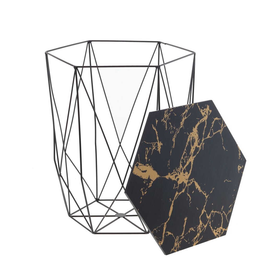 Столик-корзина декоративный, l39 w39 h45 см. Материал: Металл/Дерево Легкий современный стол-корзина с металлическим основанием и столешницей из МДФ прекрасно подчеркивает скандинавский и минималистичный характер интерьера. Съемный верх позволяет использовать внутреннюю часть для газет, подушек, пледов. Этот легкий столик можно без труда поднять и перенести, например, от дивана к вашему любимому креслу. Можно использовать в любой комнате дома как журнальный столик или прикроватную тумбу. Вес, кг: 5