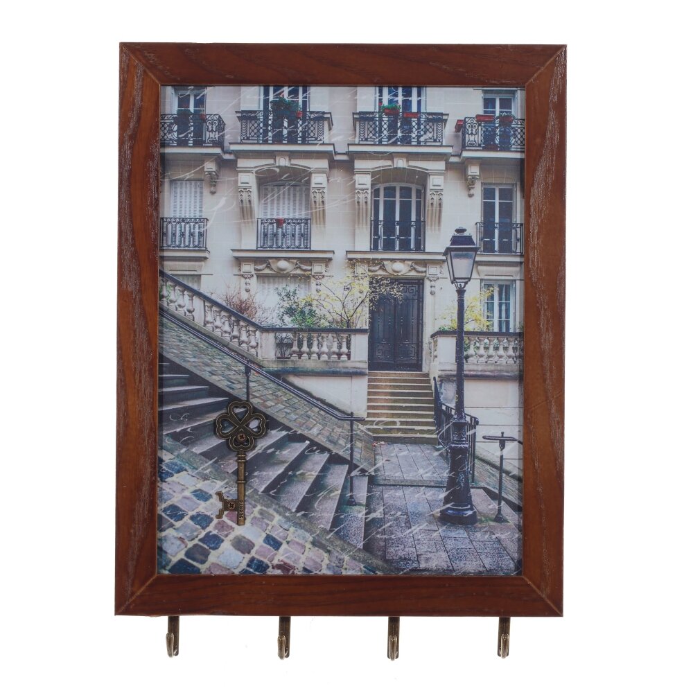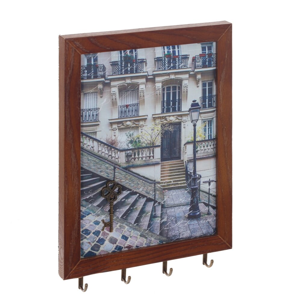 Ключница, l22 w2,5 h30 см. Материал: МДФ/Металл Ключница открытого типа с четырьмя крючками. Цвет рамки - коричневый. Центральная часть с изображением городского пейзажа и декором в виде ключа. Изделие выглядит современно и стильно. Не отказывайте себе в удовольствии созерцать это произведение каждый день. Вес, кг: 0. 477