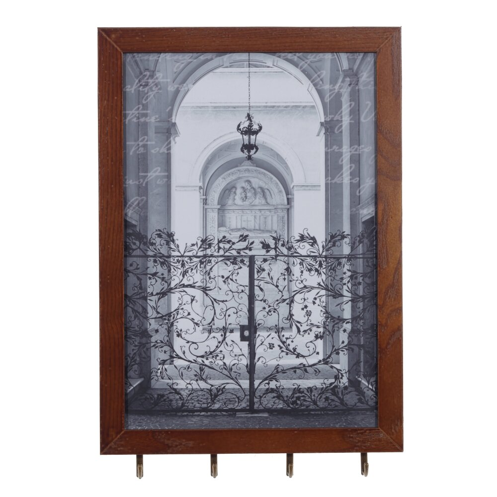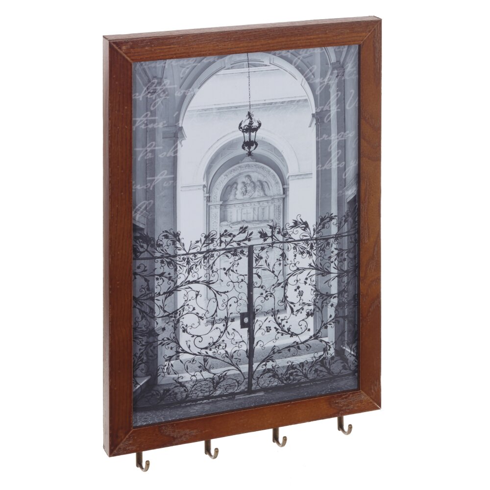 Ключница, l25 w2,5 h37 см. Материал: МДФ/Металл Ключница открытого типа с четырьмя крючками. Цвет рамки - коричневый. Центральная часть с изображением городского пейзажа. Изделие выглядит современно и стильно. Не отказывайте себе в удовольствии созерцать это произведение каждый день. Вес, кг: 0. 622