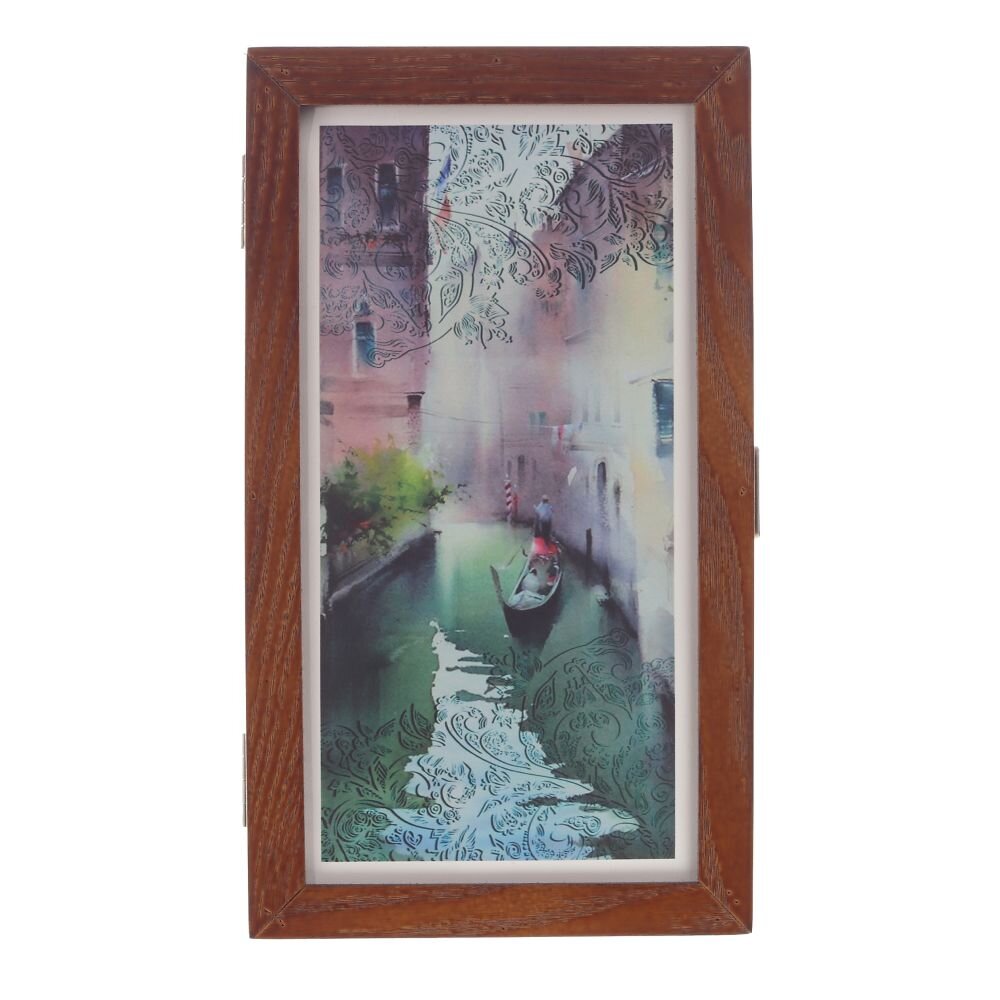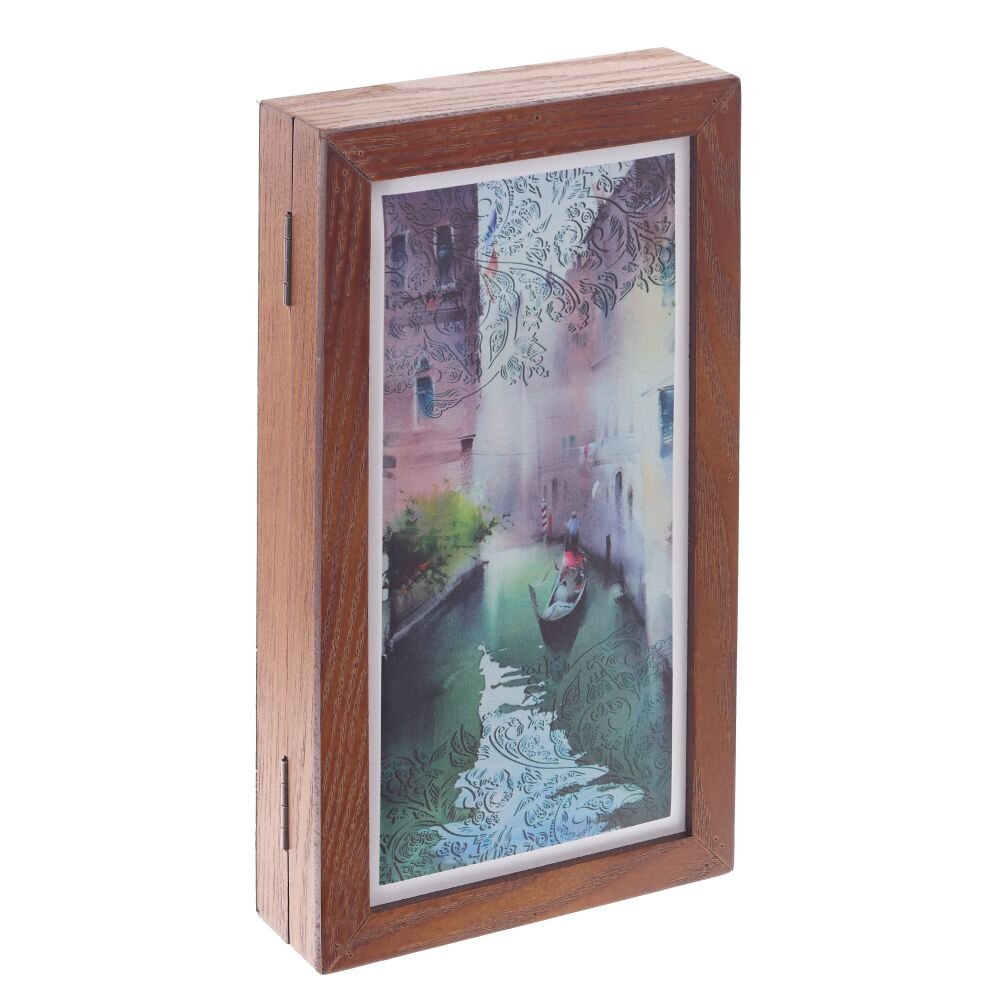 Ключница, l16 w5 h28 см. Материал: МДФ с натуральным шпоном/Металл Ключница закрытого типа с тремя крючками. Цвет коричневый с декором в виде улицы Венеции. Внутри отделана тканью под бархат. Закрывается на магнитную защелку. Крепится на стену с помощью двух металлических петелек. Вес, кг: 0. 688