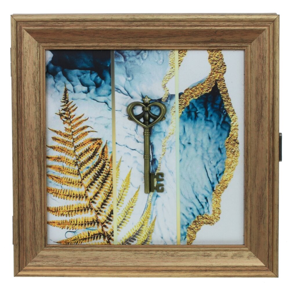Ключница, l27 w5 h27 см. Материал: Дерево/Металл Стильная ключница для современного интерьера. Ключница закрытого типа с пятью крючками. Дверца с изображением золотой ветки, в центре размещен декоративный металлический ключ . Закрывается сбоку на магнит. Ключница – предмет не только красивый, но и функциональный, поэтому ей найдется место и в офисе, и в квартире, и в загородном доме. Вес, кг: 0. 949