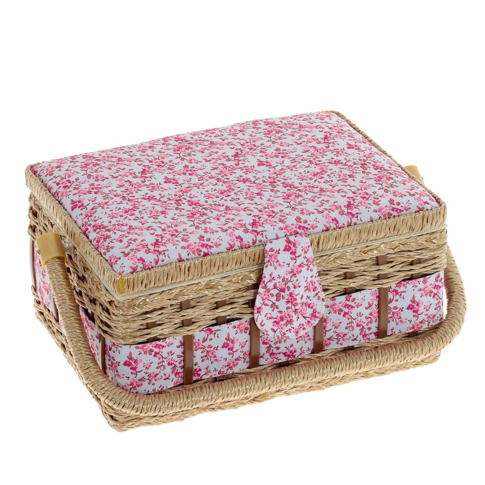 Шкатулка для рукоделия (с подносом и набором для шитья), l28 w18 h13 см. Материал: Дерево/Текстиль/Металл Шкатулка для рукоделия прямоугольной формы, с подносом и набором для шитья. Выполнена из дерева с тканевой обивкой. Оснащена удобной подъёмной ручкой с оплеткой шпагатом. На внутренней поверхности крышки есть удобный кармашек для мелочей и игольница. Такая шкатулка - стильный аксессуар и обязательно должна быть в арсенале каждой рукодельницы! Вес, кг: 0. 793