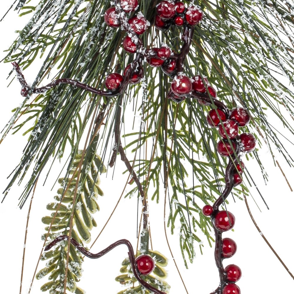 Эта новогодняя ветка – настоящая находка для праздничного декора. Станет отличным самостоятельным украшением, а также прекрасно впишется в любую композицию.