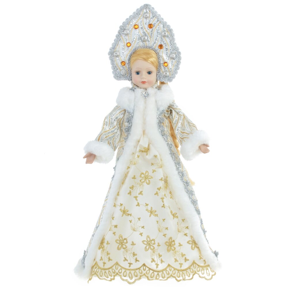 Снегурочка с емкостью для конфет, l32 w32 h55 см. Материал: Текстиль/Полимерные материалы Снегурочка в роскошном белом наряде с меховой отделкой и кокошнике будет прекрасным подарком к Новому году. Ее можно поставить под елку, а так же использовать как милый подарок. Вес, кг: 0. 39