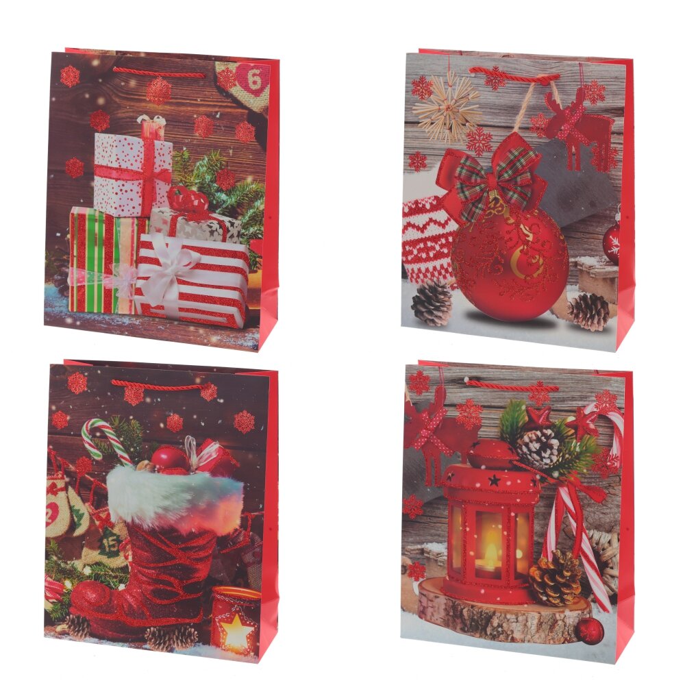 Пакет подарочный (бумага 210г/м2, блок микс 12шт), L26 W10 H32 см, 4в.