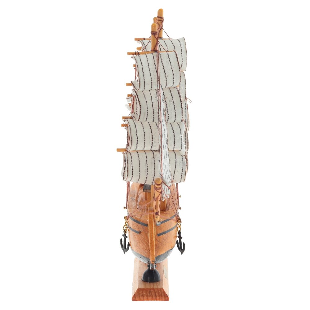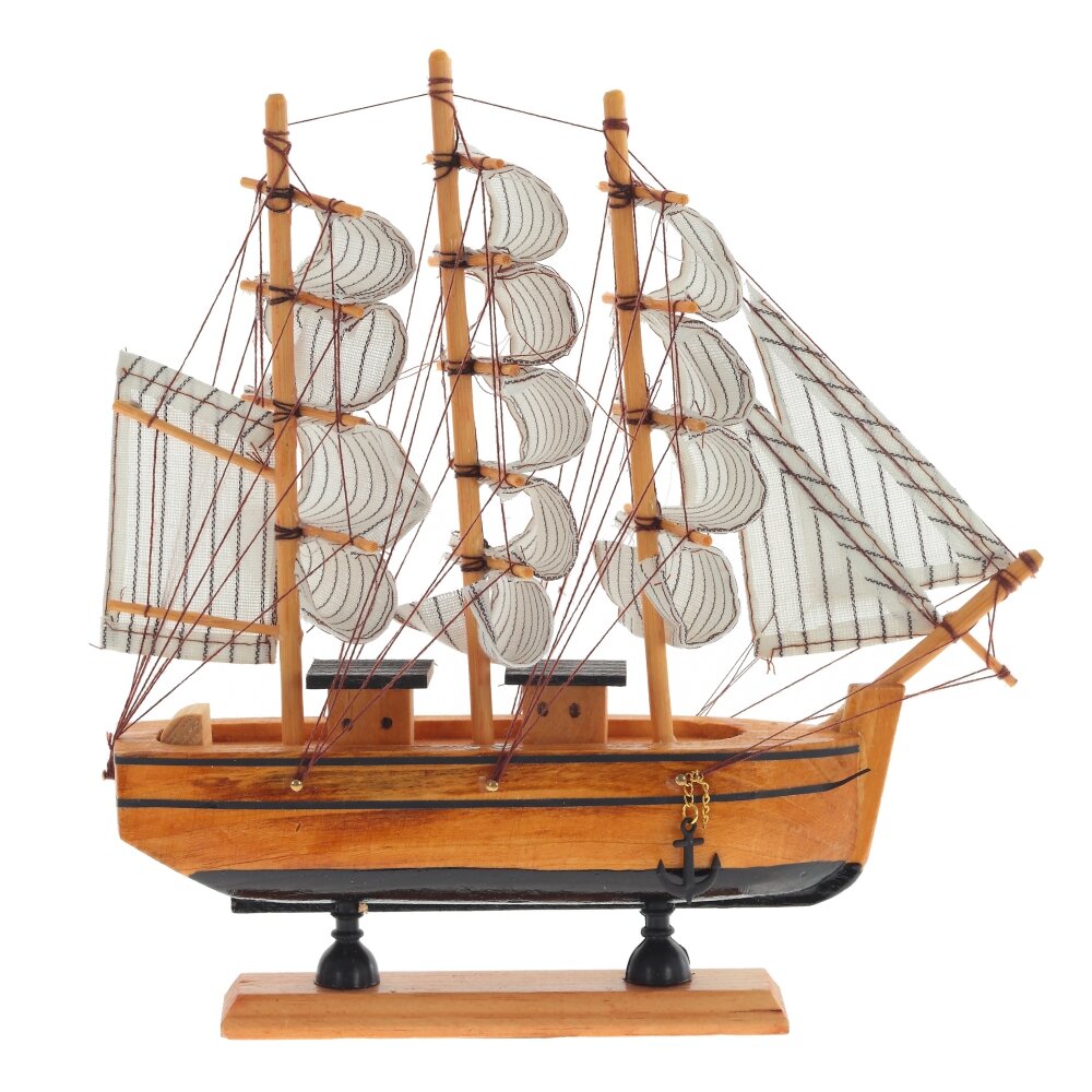 Модель деревянного парусника реалистична, состоит из множества мелких подробных деталей.   Корабль устойчиво стоит на горизонтальных поверхностях благодаря широкой деревянной подставке. Станет замечательным дополнением  коллекции парусников. Модель корабля – превосходный сувенир мужчине к любому празднику и первый шаг к воплощению мечты об увлекательных морских приключениях.