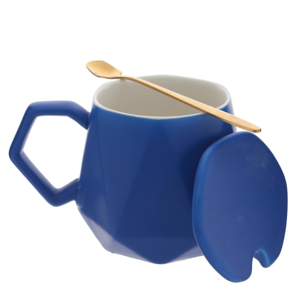 Кружка с крышкой и ложкой, 450 мл, L14 W9 H9,5 см, 3в.