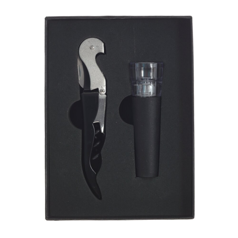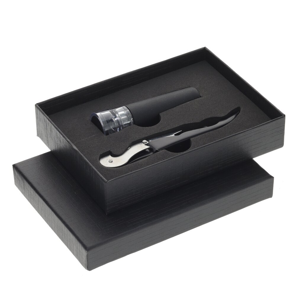 Набор для вина (2 предмета), l12 w15 h3 см. Материал: Металл/Полимерные материалы Элегантный набор для вина, состоящий из двух предметов, станет отличным подарком для ценителей благородных напитков. Аксессуары выполнены из высококачественных материалов: коррозионностойкой стали, полимерных материалов и металла, что обеспечивает их надежность и долговечность. В комплект входит классический штопор, позволяющий легко и аккуратно открывать бутылки вина, а также вакуумная пробка, которая поможет сохранить свежесть и вкус напитка даже после вскрытия бутылки. Все элементы набора аккуратно размещены в стильной подарочной коробке черного цвета, которая подчеркивает статус и оригинальность подарка. Такой набор для вина не только практичен, но и станет украшением любого застолья, а его современный дизайн впишется в любой интерьер. Вес, кг: 0. 146