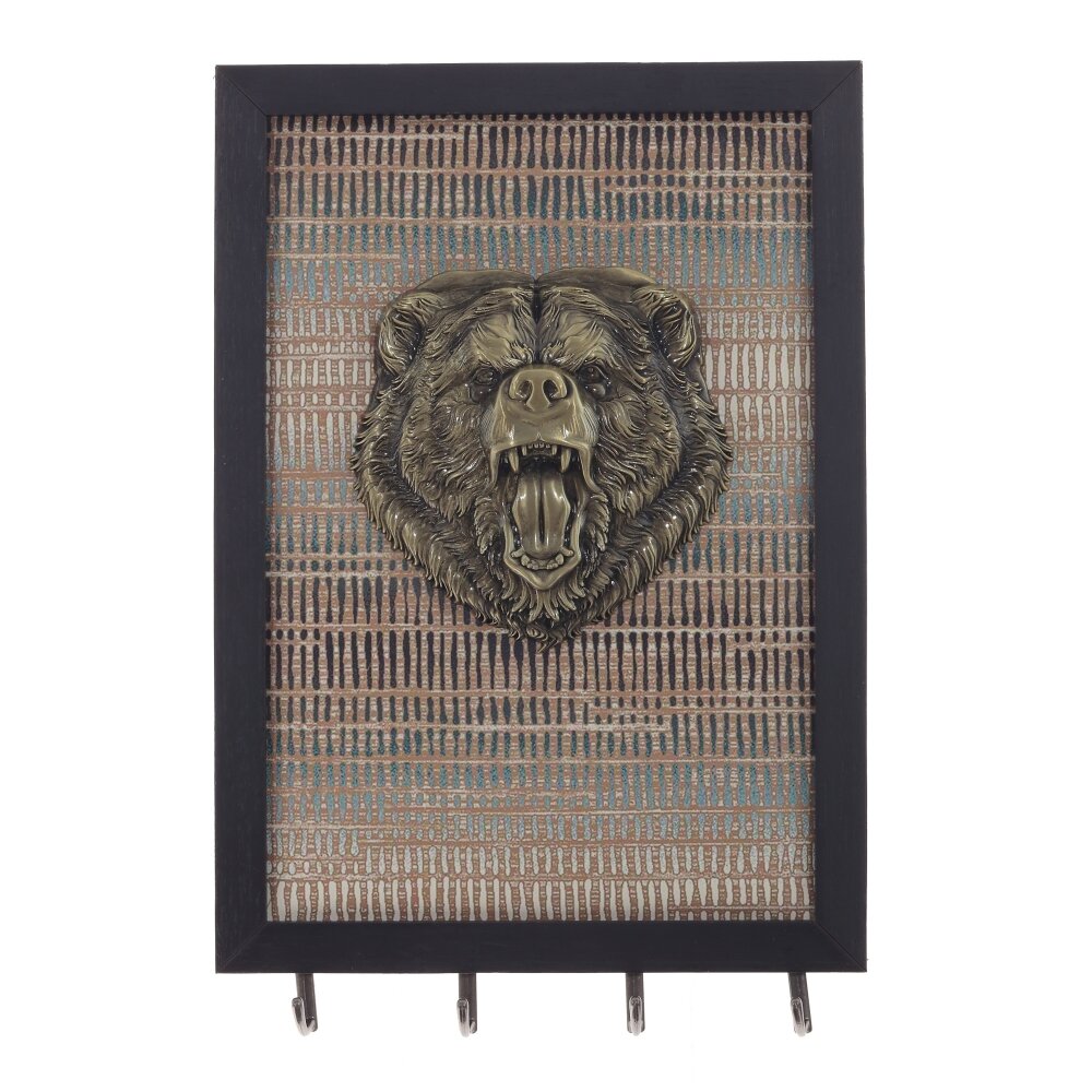 Ключница, l20 w3 h30 см. Материал: Дерево/Полимерные материалы/Металл Ключница настенная, открытого типа, с четырьмя металлическими крючками и декором в виде головы медведя. Ключница – предмет не только красивый, но и функциональный, поэтому ей найдется место и в офисе, и в квартире, и в загородном доме. Вес, кг: 0. 451
