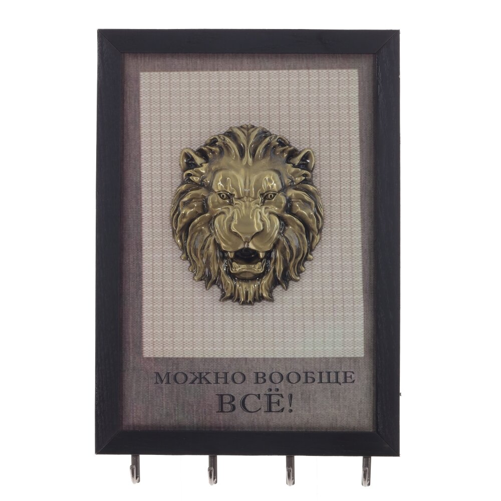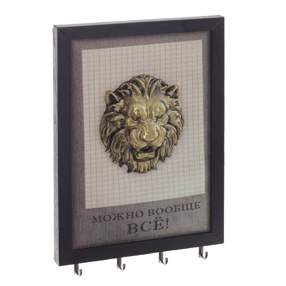 Ключница, l20 w3 h30 см. Материал: Дерево/Металл/Полимерные материалы Ключница настенная, открытого типа, с четырьмя металлическими крючками и декором в виде головы льва, а так же надписи : Можно вообще все!. Ключница – предмет не только красивый, но и функциональный, поэтому ей найдется место и в офисе, и в квартире, и в загородном доме. Вес, кг: 0. 445