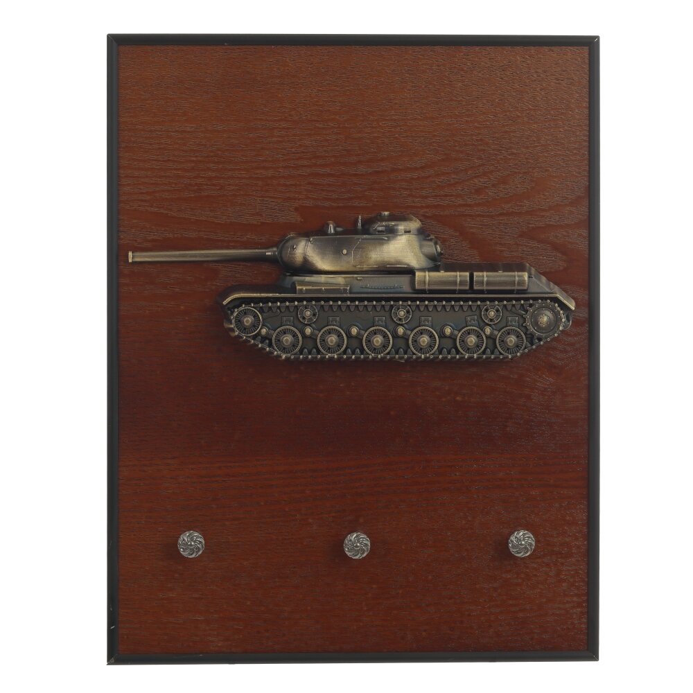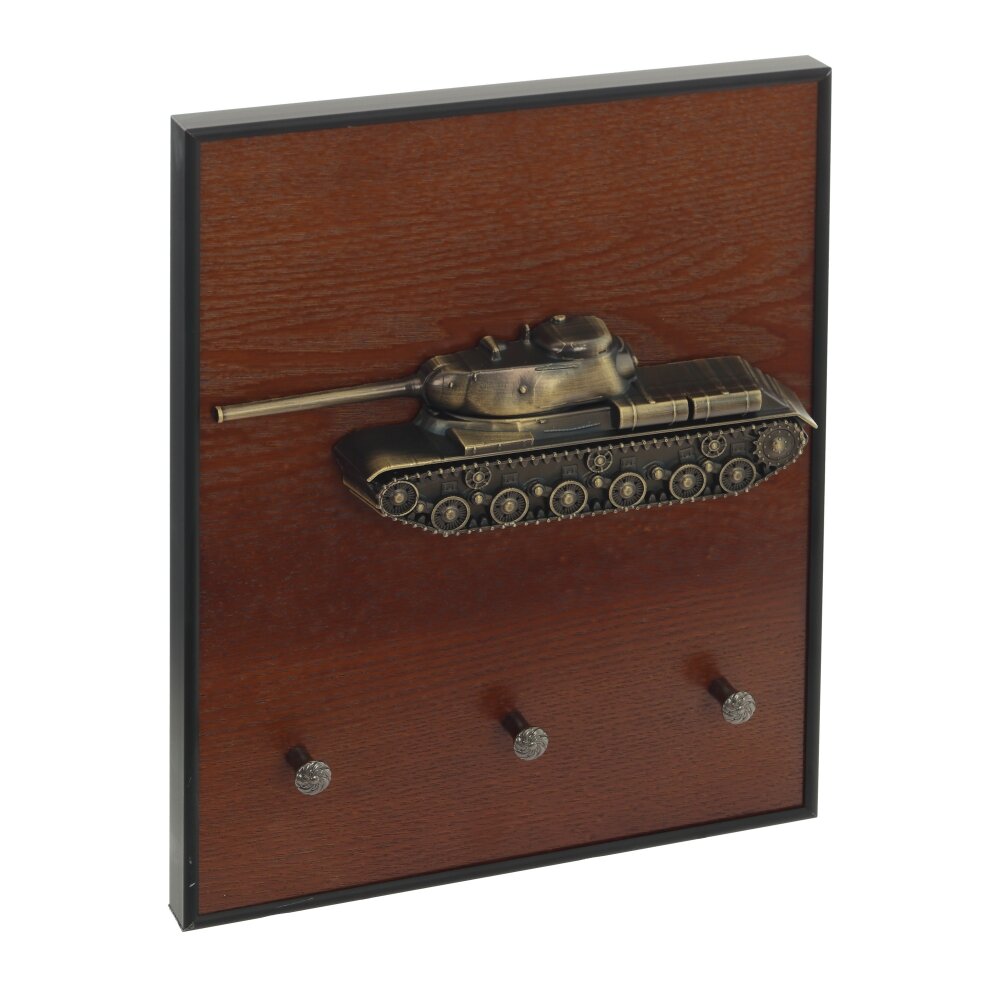 Ключница, l22 w3 h28 см. Материал: Дерево/Металл Ключница настенная с тремя крючками. Имеет в центре декор в виде танка. Простой и в то же время оригинальный внешний вид ключницы легко впишется в интерьер любых помещений. Вес, кг: 0. 872