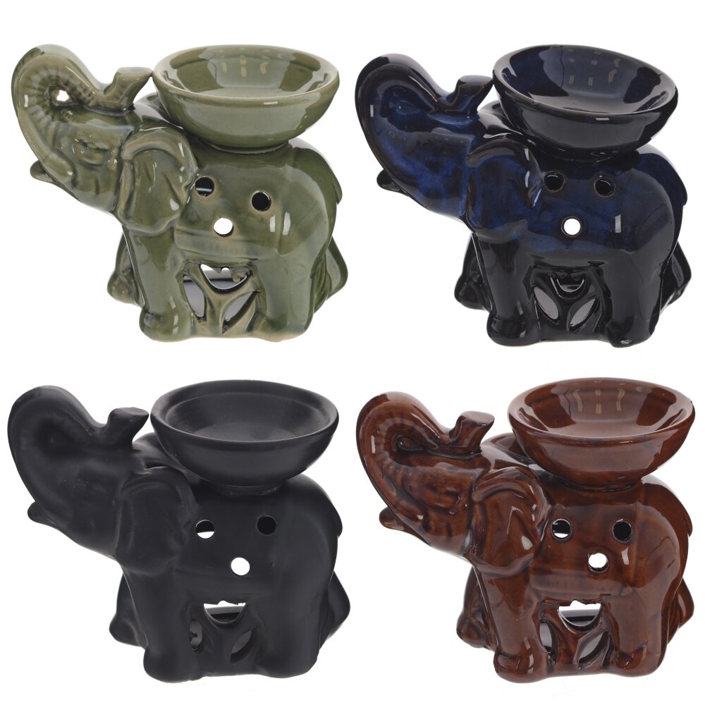 Аромалампа из керамики, выполненная в форме милого слона, станет не только практичным аксессуаром для вашего дома, но и оригинальным элементом декора. Гладкая глазурованная поверхность придает изделию элегантный блеск, а изящные детали, такие как ушки, хобот и цветочный орнамент, делают лампу особенно привлекательной. Такая аромалампа предназначена для использования с ароматическими маслами или восковыми мелками. В верхнюю чашу наливается немного воды с несколькими каплями масла, а внутрь лампы ставится свеча-таблетка. Приятный аромат быстро распространяется по помещению, создавая уютную атмосферу и поднимая настроение. Керамическая аромалампа отличается прочностью и долговечностью, легко очищается и подходит для любого интерьера. Представлено в четырех вариантах.