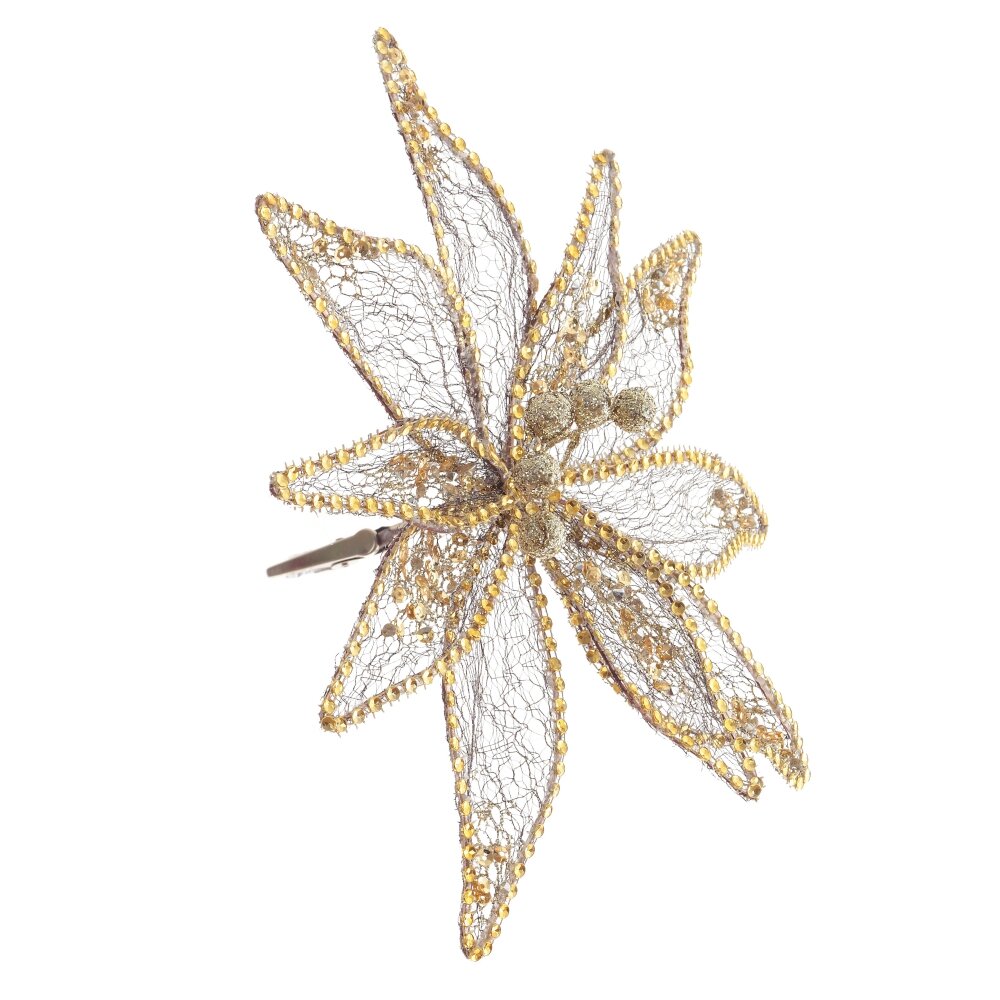Цветок искусственный пуансеттия (на клипсе), L23 W23 H12 см
