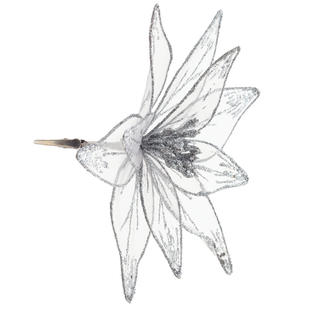 Цветок искусственный пуансеттия (на клипсе), L23 W23 H12 см