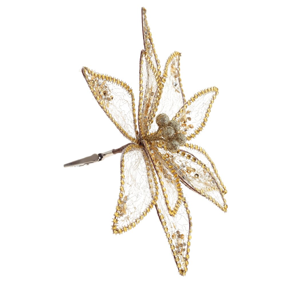 Цветок искусственный пуансеттия (на клипсе), L23 W23 H12 см