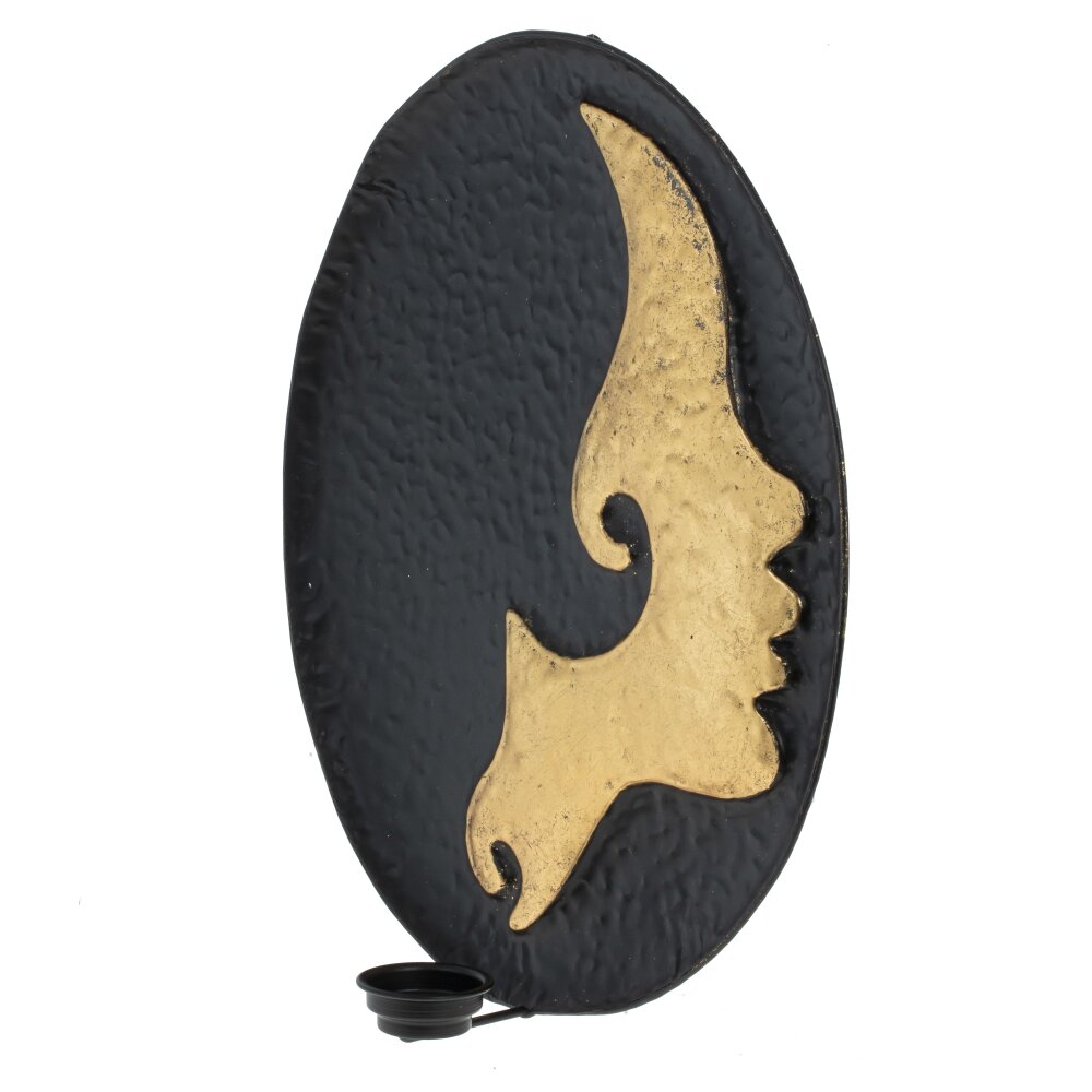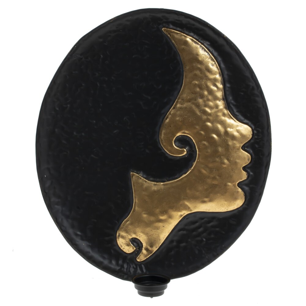 Оригинальное металлическое панно с изображением девушки золотого цвета. Изделие имеет подсвечник, который поможет создать мягкий и приятный свет от свечи. Это панно станет идеальным решением для тех, кто желает украсить свой дом чем то оригинальным.