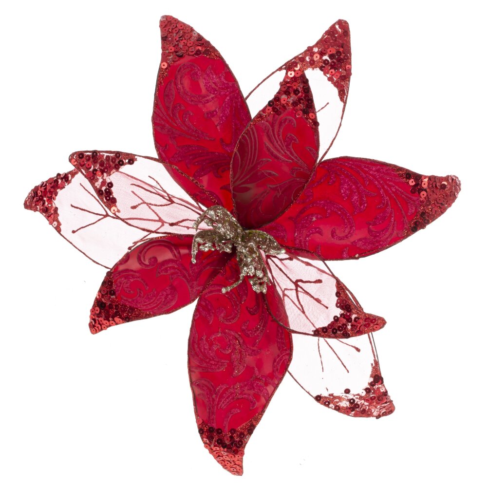 Цветок искусственный пуансеттия (на клипсе), L30 W10 H30 см