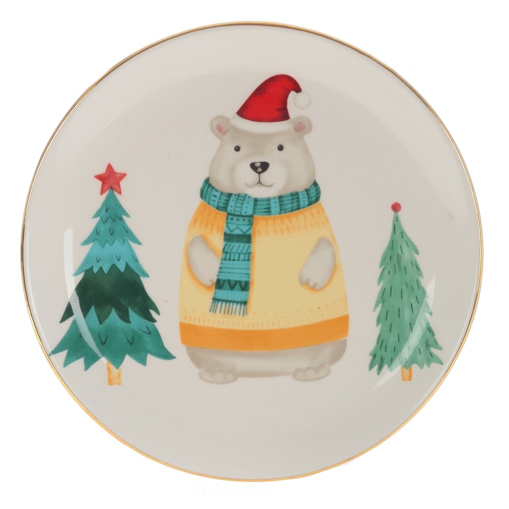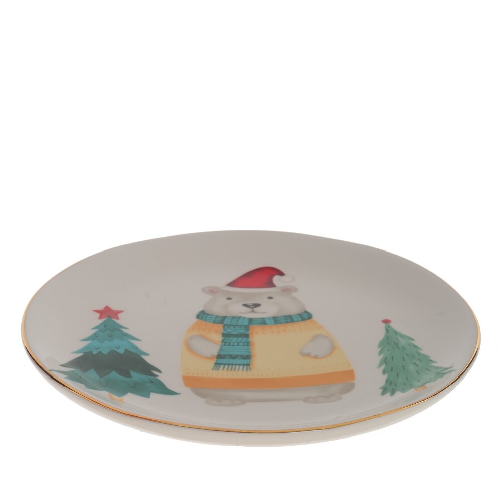 Новогодняя тарелка с ярким забавным медведем привнесет в ваш дом атмосферу волшебства и праздника! Керамика, из которой выполнено изделие, обеспечивает прочность и долговечность. Этот прекрасный предмет добавит торжественности и настроения на ваш новогодний стол и станет незаменимым атрибутом вашего праздника!