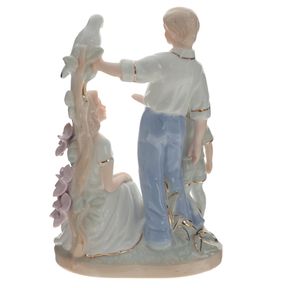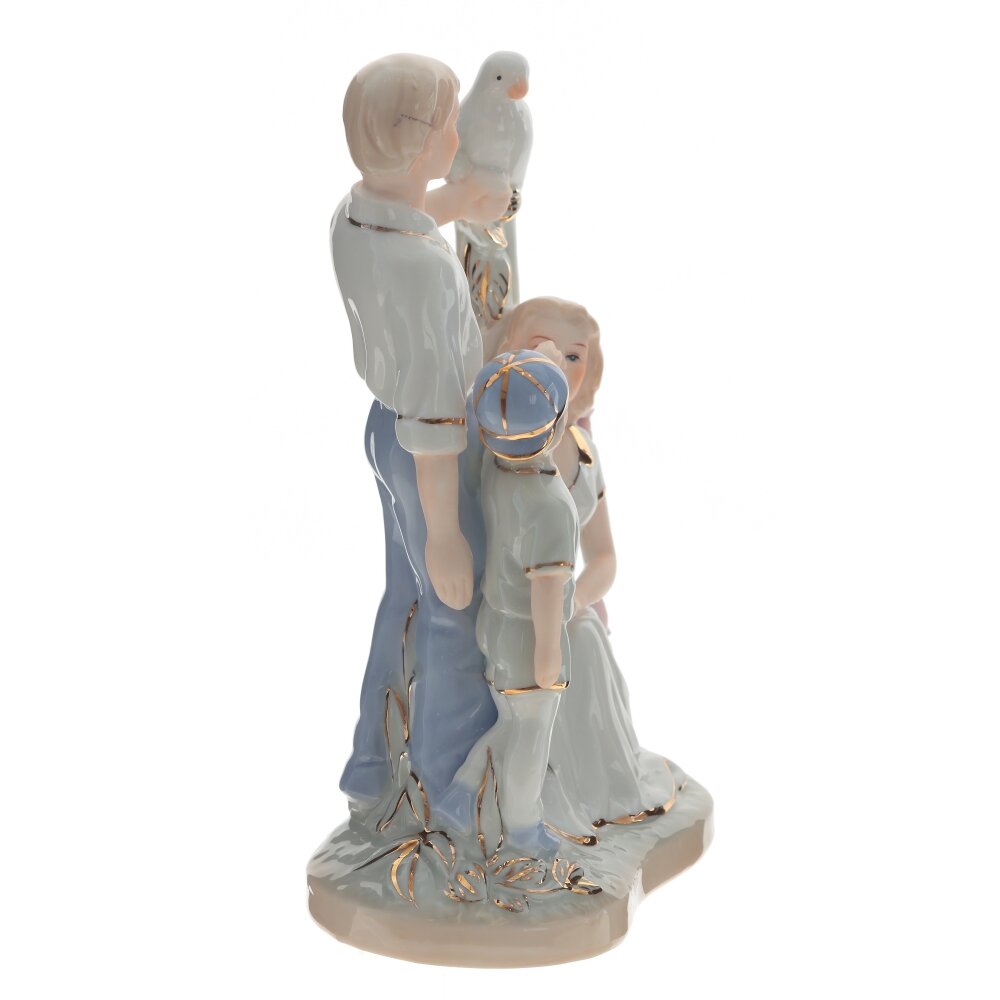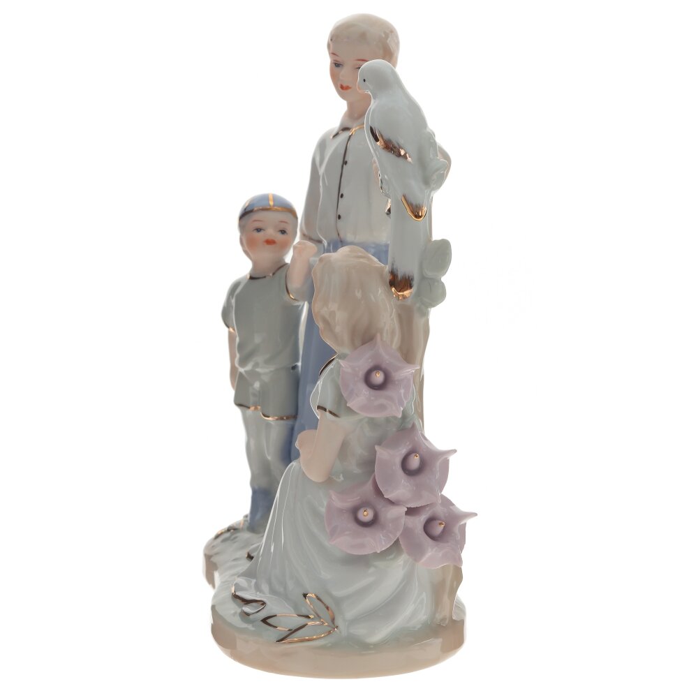 Фигурка декоративная семья, l14 w9 h21 см. Материал: Фарфор Фигурка декоративная Семья из фарфора представляет собой удивительно нежное произведение искусства. На этой фигурке изображена мама, папа и их сын, образующие уютную семейную группу. Папа держит на руке крупную белую птицу, попугая. Мальчик, с удивлением и радостью на лице, указывает на птицу, будто озаренный чудесным моментом. Данная фигурка идеально передает атмосферу тепла, заботы и дружелюбия, которая царит в семье. Ее деликатные детали и изысканный дизайн делают ее прекрасным дополнением к домашнему интерьеру, создавая атмосферу уюта и любви. Размеры фигурки позволяют уместить ее на полке, комоде или столике, где она станет незаменимым элементом декора, напоминающим о важности семейных ценностей. Вес, кг: 0. 747