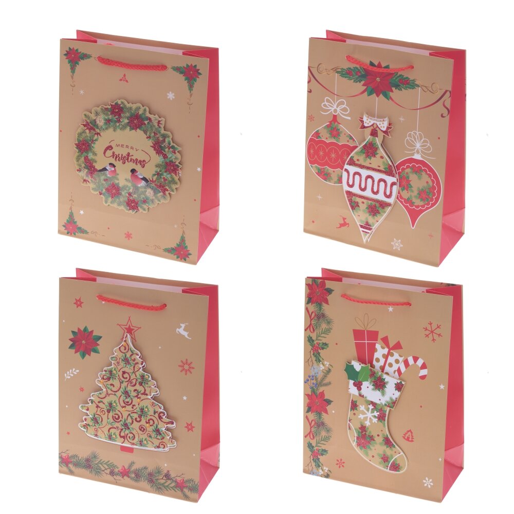 Пакет подарочный (бумага 210г/м2, блок микс 12шт), L26 W10 H32 см, 4в.