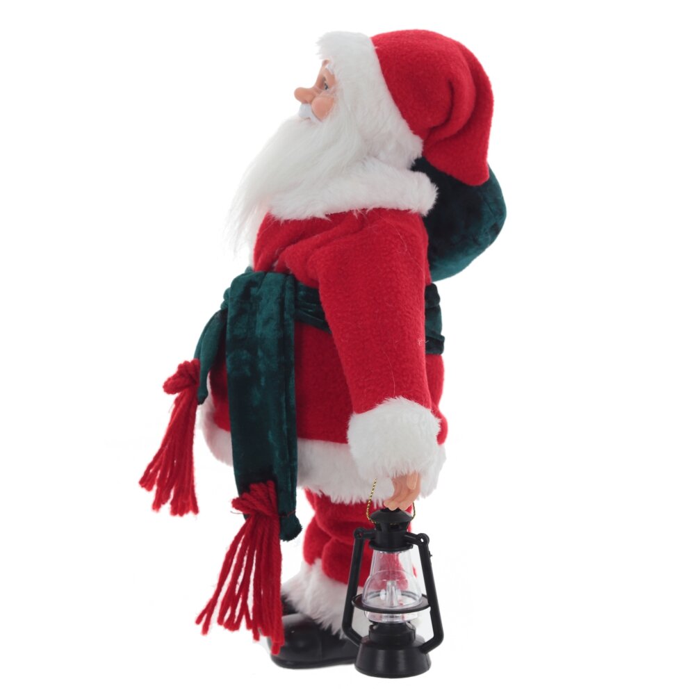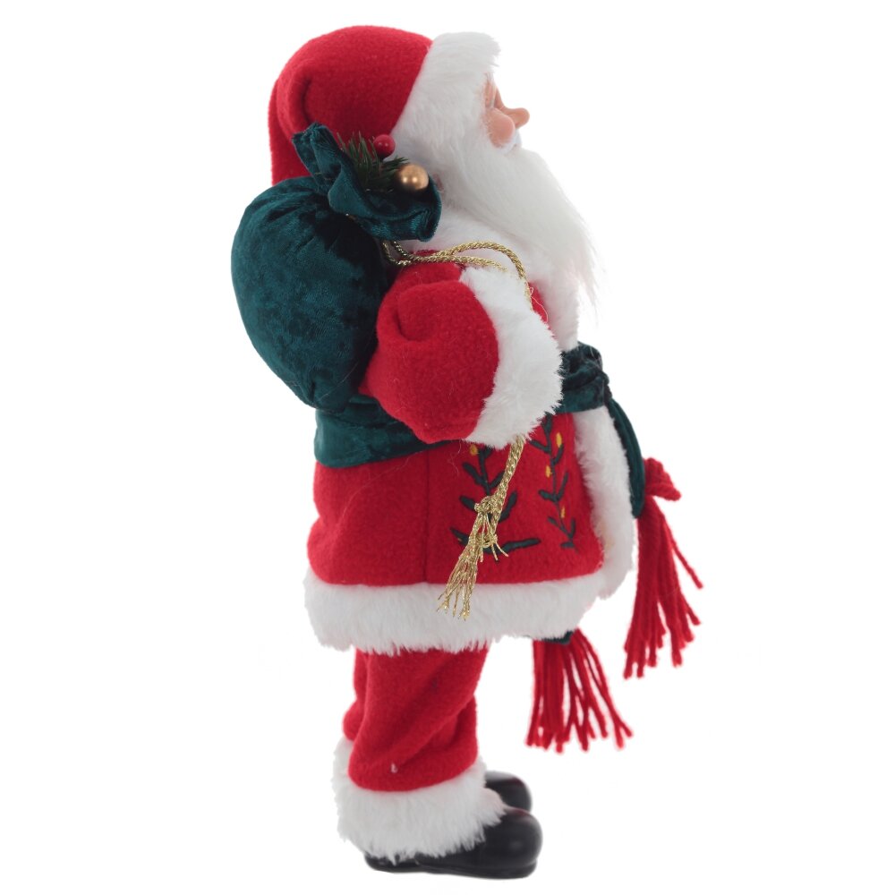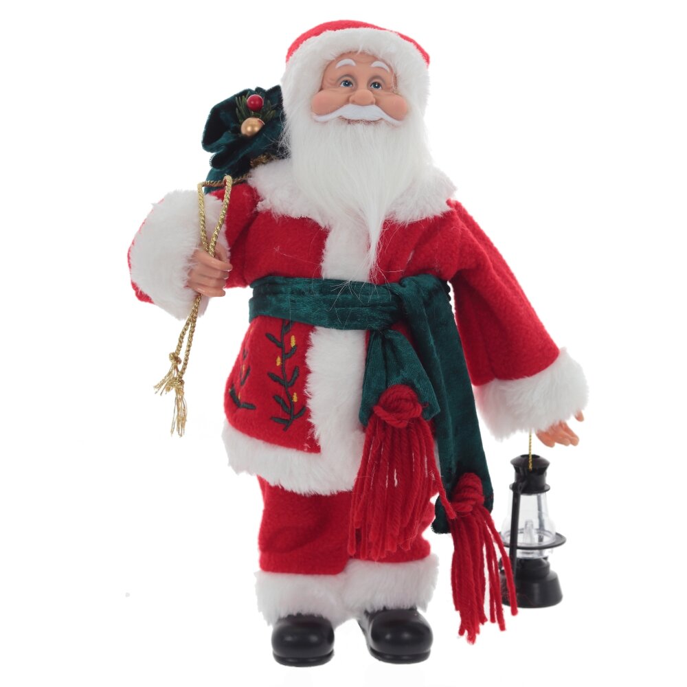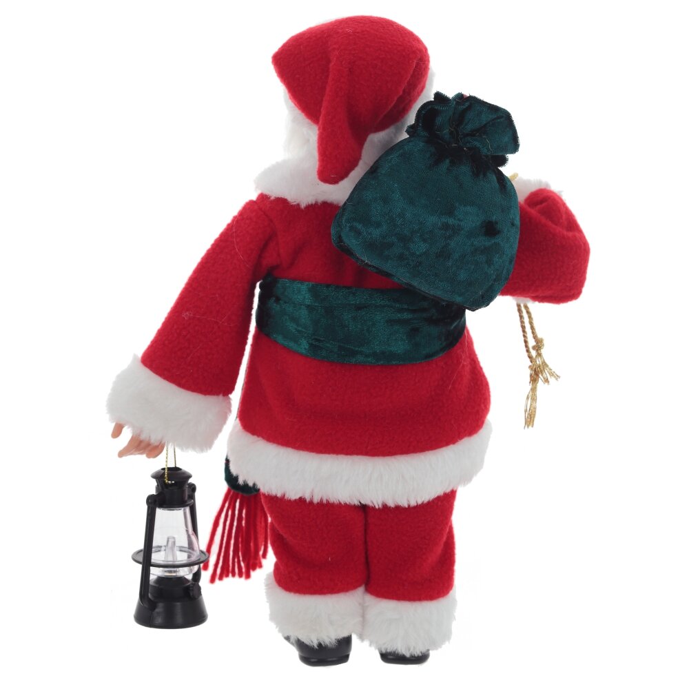 Дед мороз, l20 w12 h30 см. Материал: Декоративный Дед Мороз высотой 30 см - очаровательный символ новогоднего праздника! Он одет в традиционный красный костюм с белым мехом, украшенный вышивкой и широким зеленым бархатным поясом. Мешок с подарками перекликается с поясом, создавая гармоничный образ. Руки и лицо из полимерных материалов придают Деду Морозу выразительность и живость. В его руке фонарь, который создает волшебную атмосферу праздника. Вес, кг: 0. 217