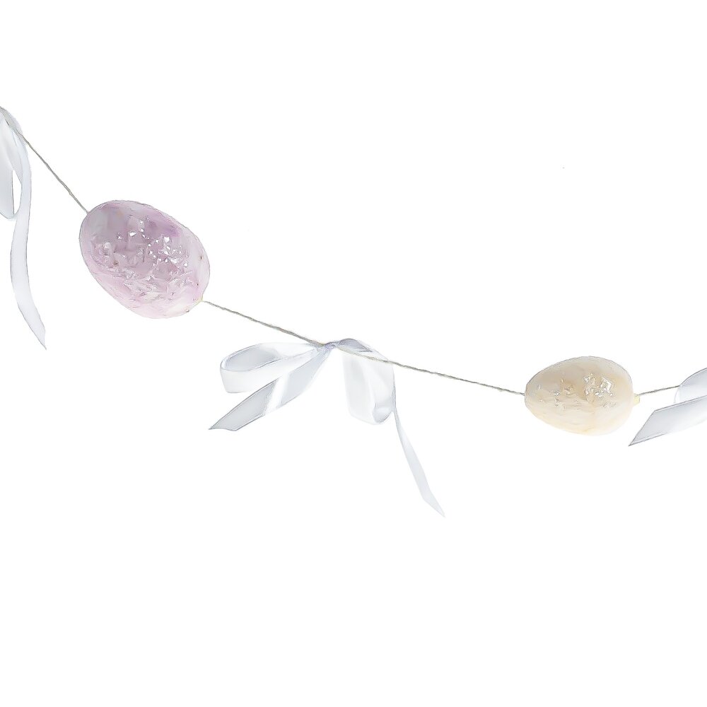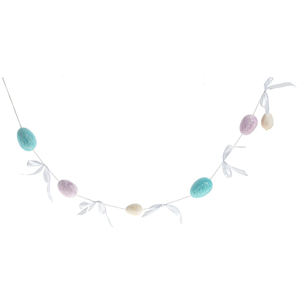 Изделие декоративное гирлянда, l100 w4 h4 см. Материал: Полимерные материалы Пасхальная гирлянда из декоративных яиц и ленточек – прекрасное украшение для праздничного интерьера. Гирлянда имеет длину 100 см, что идеально подходит для создания акцента на стене или окне. Яйца нежных цветов создают впечатляющий визуальный эффект, напоминающий о радости пасхальных традиций. Ленточки, завязанные в бантики, добавляют гирлянде нежности и изящности. Они аккуратно расположены между яйцами, придавая гармонию композиции. Вес, кг: 0. 027