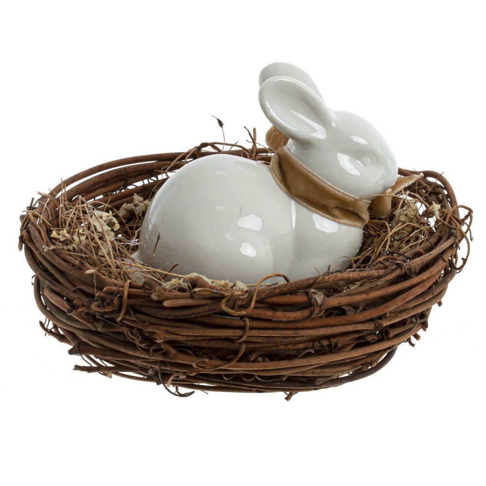 Изделие декоративное гнездо с зайчиком, L12 W12 H8 см
