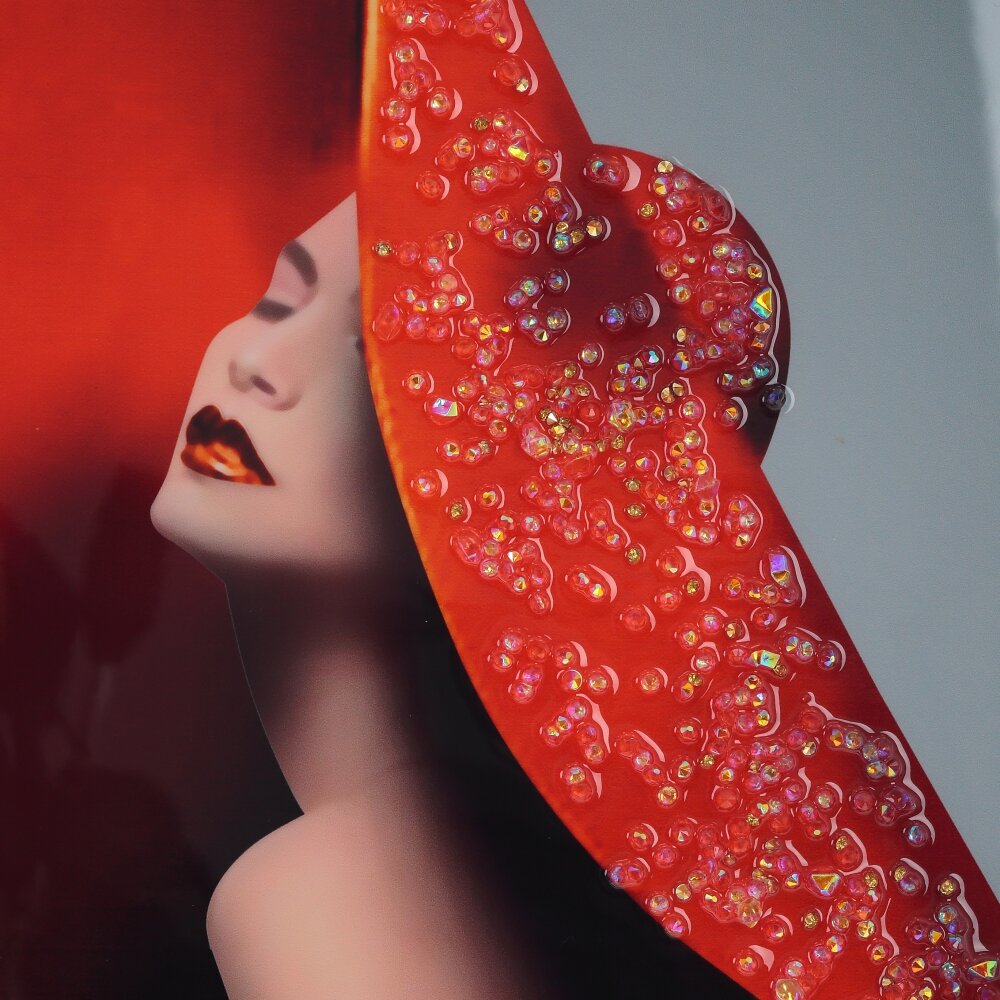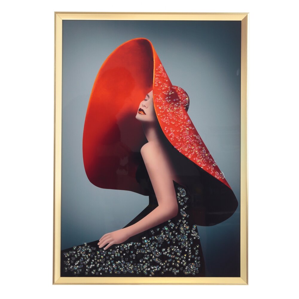 Панно с кристальным декором девушка в красной шляпе, L51 W2,5 H71 см