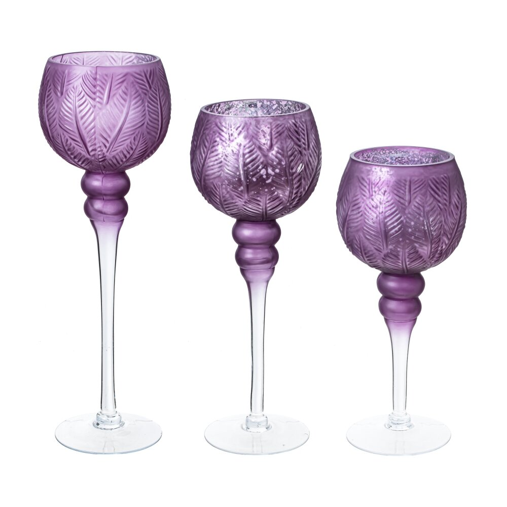 Набор из 3-х подсвечников, l36 w13 h40 см. Материал: Стекло Набор из трех оригинальных стеклянных подсвечников на высоких ножках - прекрасный аксессуар для оформления праздничного стола. Он дополнит сервировку стола, подойдет для романтического вечера, или, просто украсит ваш дом. Для свечи, диаметром 6 см. Вес, кг: 2. 34