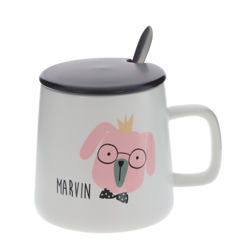 Кружка с крышкой и ложкой, 400 мл, L12 W9 H9 см