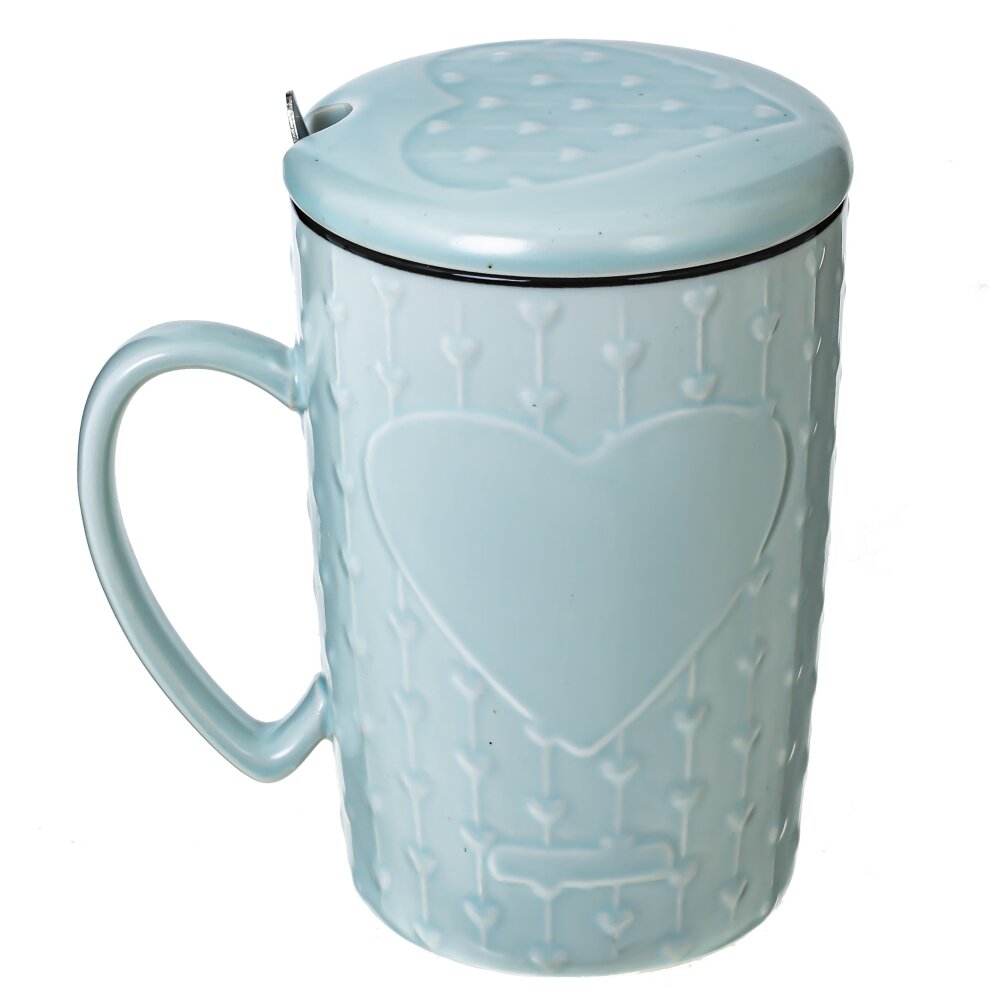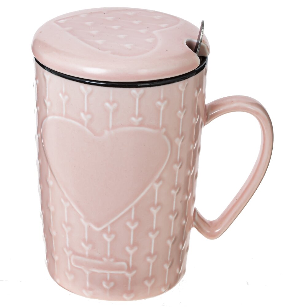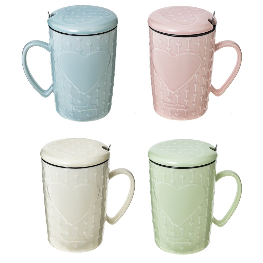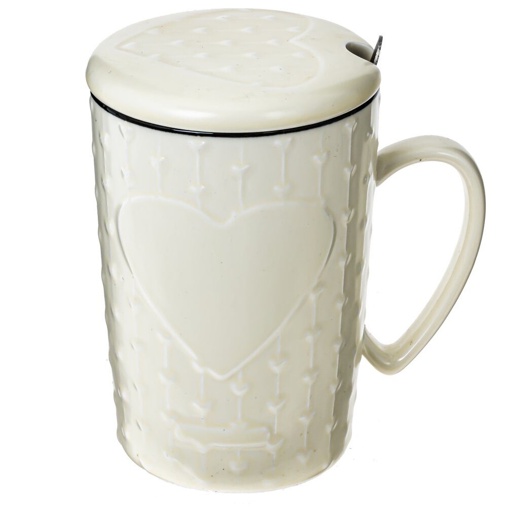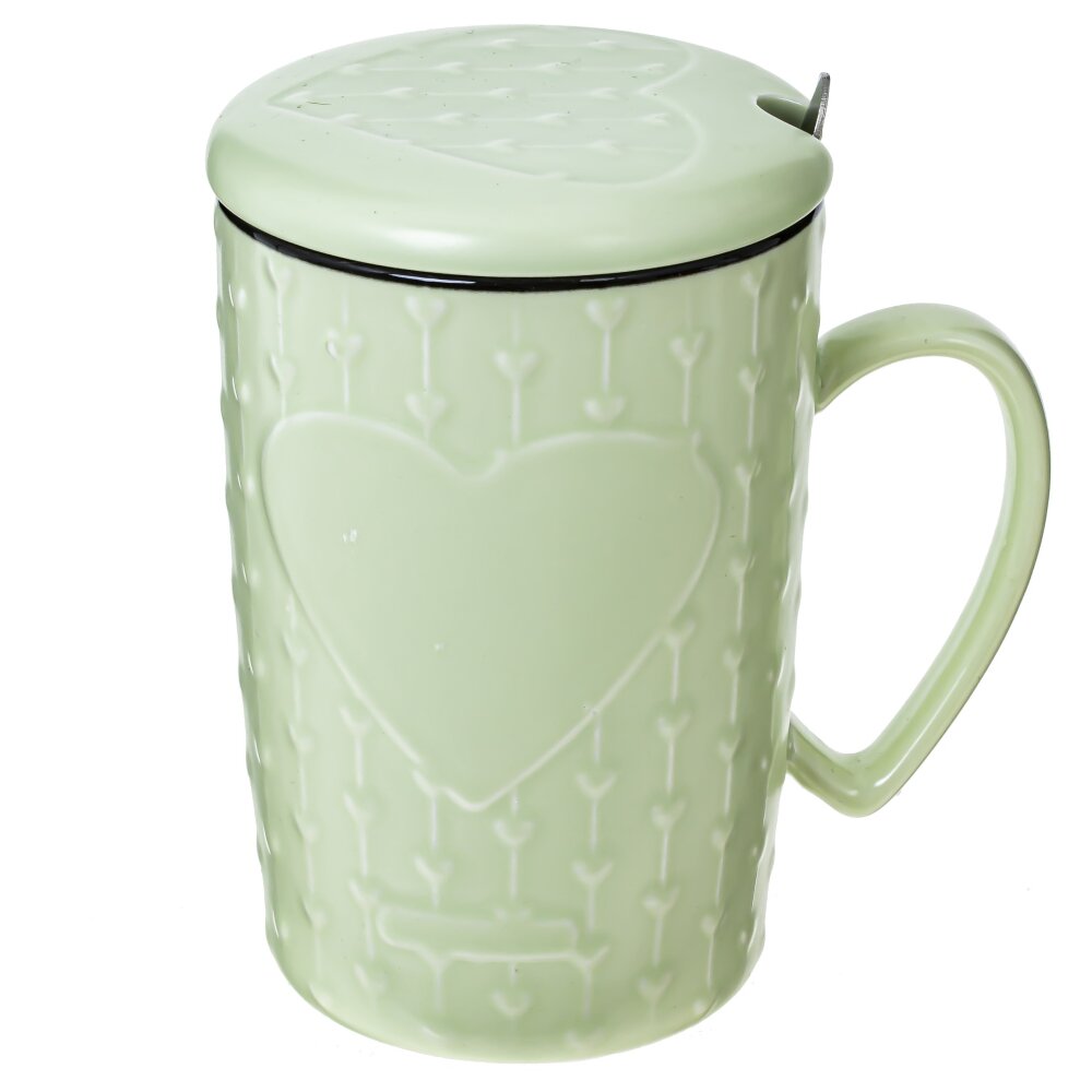 Кружка с крышкой и ложкой, 400 мл, L11,5 W8,5 H13 см, 4в.