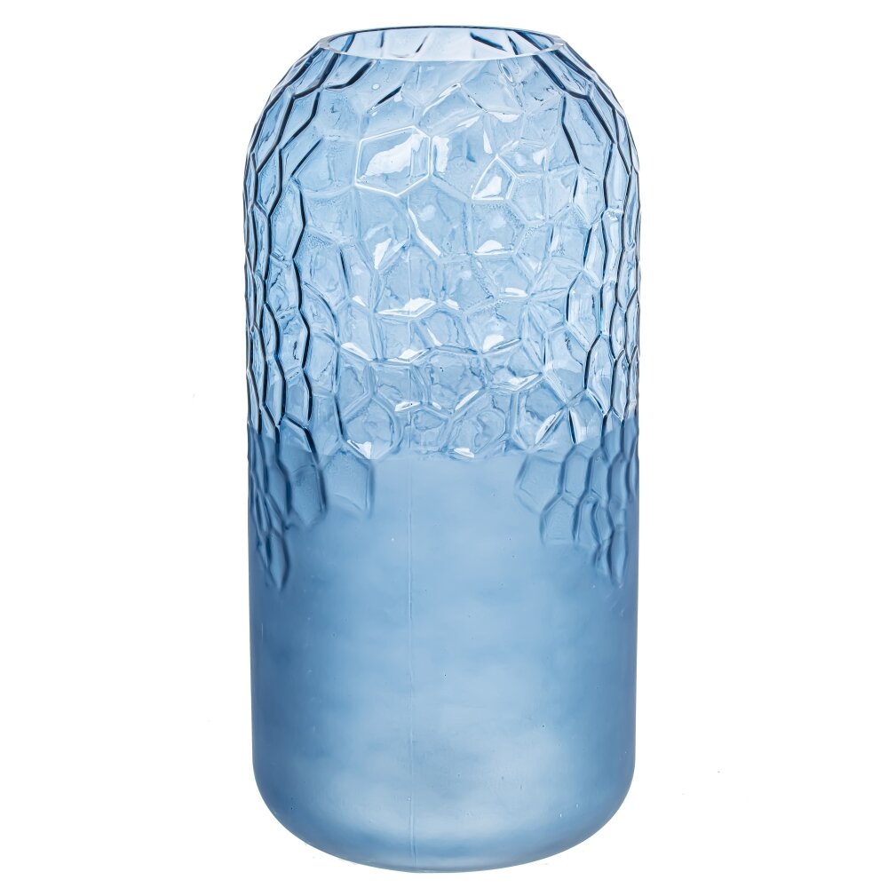 Прекрасная стеклянная ваза голубого цвета с рельефным узором, станет изысканным дополнением к вашему интерьеру. Ее диаметр горловины 9 см позволит удобно размещать в ней цветы или другие декоративные элементы. Элегантный дизайн и яркий оттенок вазы придадут вашему пространству особый шарм и уют. Благодаря большим размерам, ваза идеально подойдет для цветочных композиций различных размеров. Этот предмет интерьера не только прекрасно смотрится, но и функционален - он поможет вам создать уютный уголок в доме или офисе.