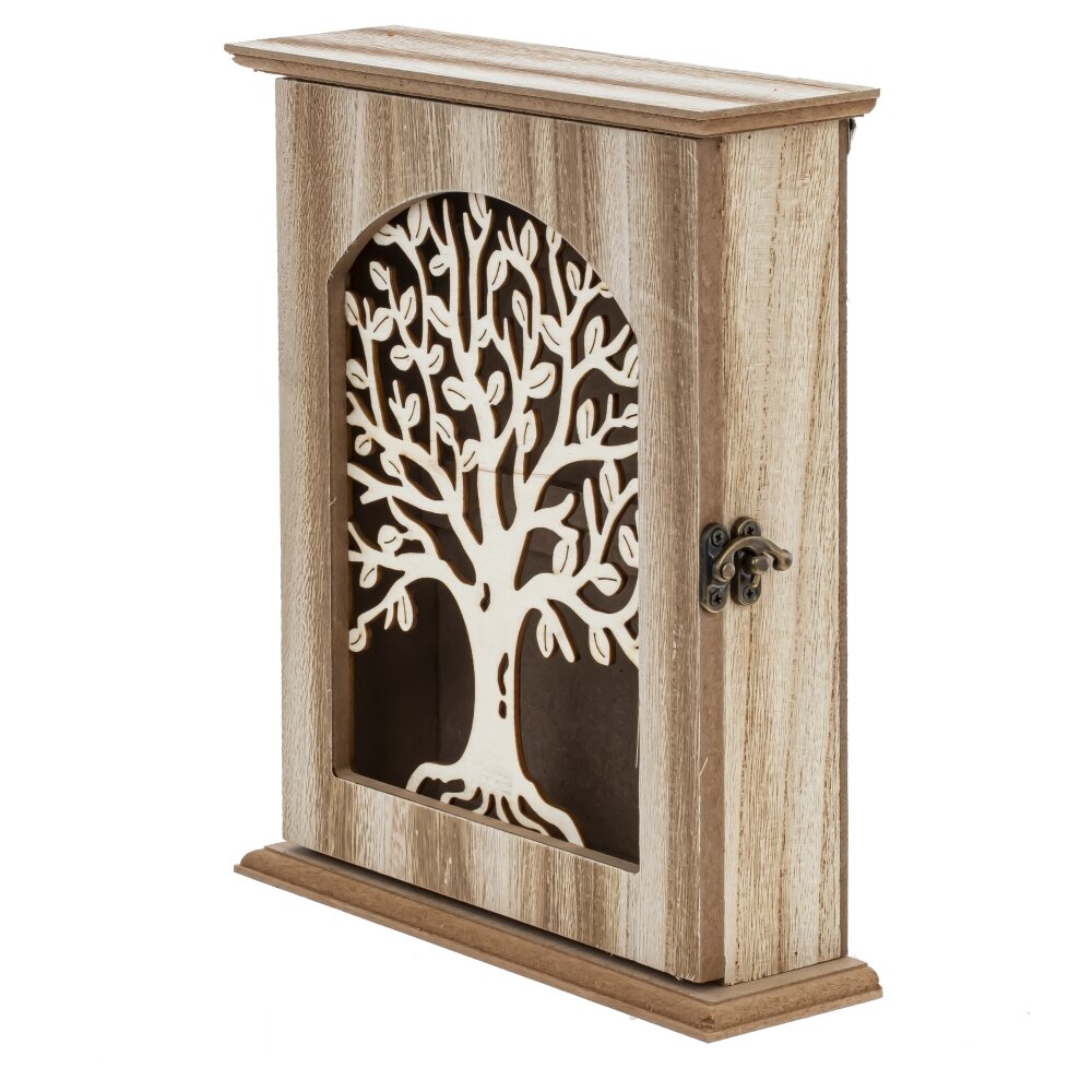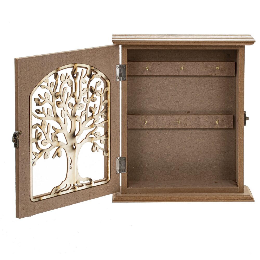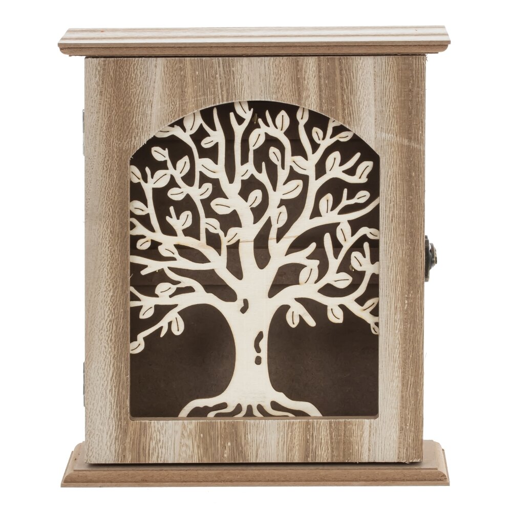 Ключница, l19 w6 h25,5 см. Материал: Дерево/Металл Настенная ключница - стильное и функциональное решение для хранения ваших ключей. Ее закрытый тип обеспечивает безопасность ключей и предотвращает их потерю. Декоративный элемент в виде дерева на дверце добавляет нотку природы и уюта в ваш интерьер. Внутри ключницы расположены шесть крючков, на которых можно удобно разместить ключи от дома, автомобиля и других помещений. Этот аксессуар поможет поддерживать порядок и организовать хранение ваших ключей, делая их всегда под рукой. Идеальное дополнение для любого дома. Вес, кг: 0. 545
