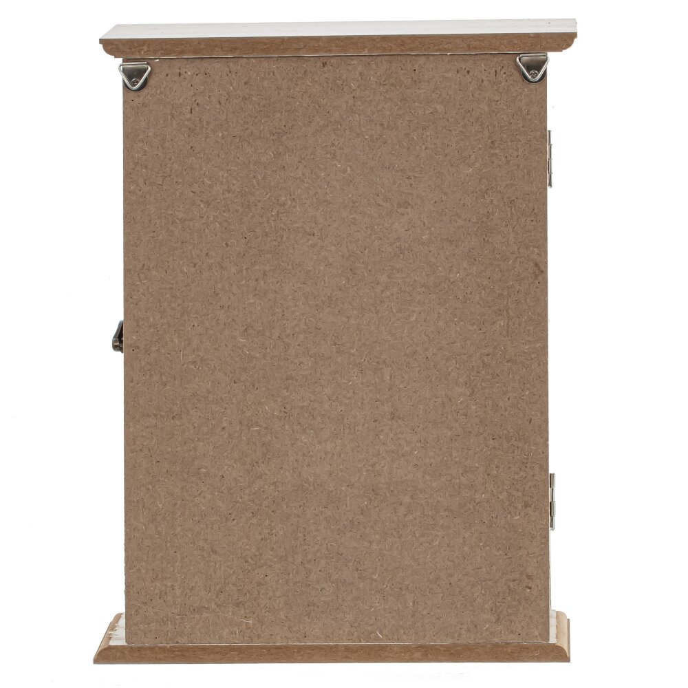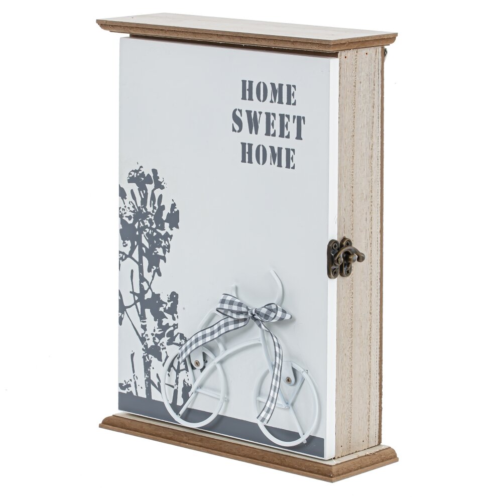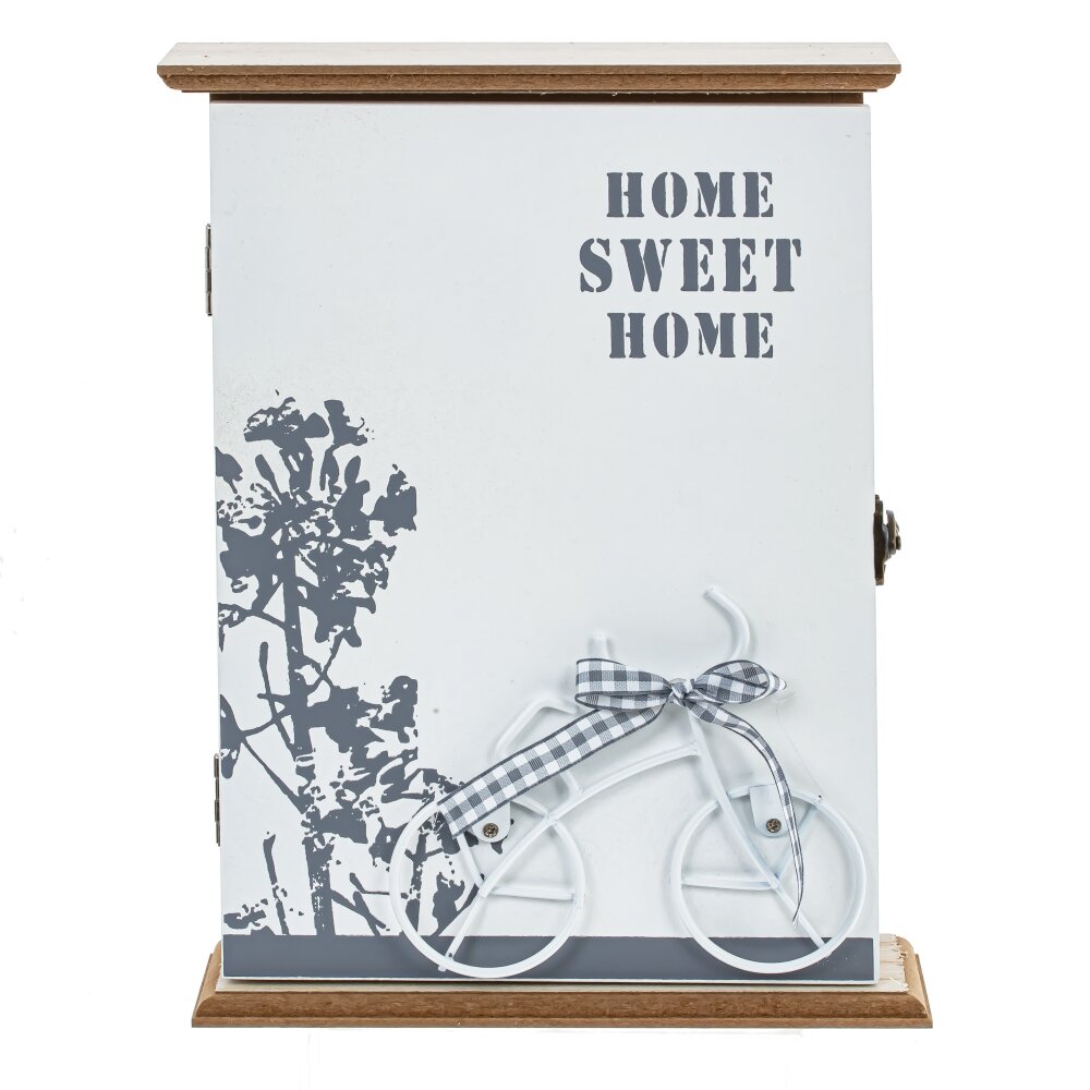 Ключница, l19 w6 h25,5 см. Материал: Дерево/Металл Настенная ключница - стильное и функциональное решение для хранения ваших ключей. Ее закрытый тип обеспечивает безопасность ключей и предотвращает их потерю. Декоративный элемент в виде велосипеда на дверце добавляет нотку природы и уюта в ваш интерьер. Внутри ключницы расположены шесть крючков, на которых можно удобно разместить ключи от дома, автомобиля и других помещений. Этот аксессуар поможет поддерживать порядок и организовать хранение ваших ключей, делая их всегда под рукой. Идеальное дополнение для любого дома. Вес, кг: 0. 65