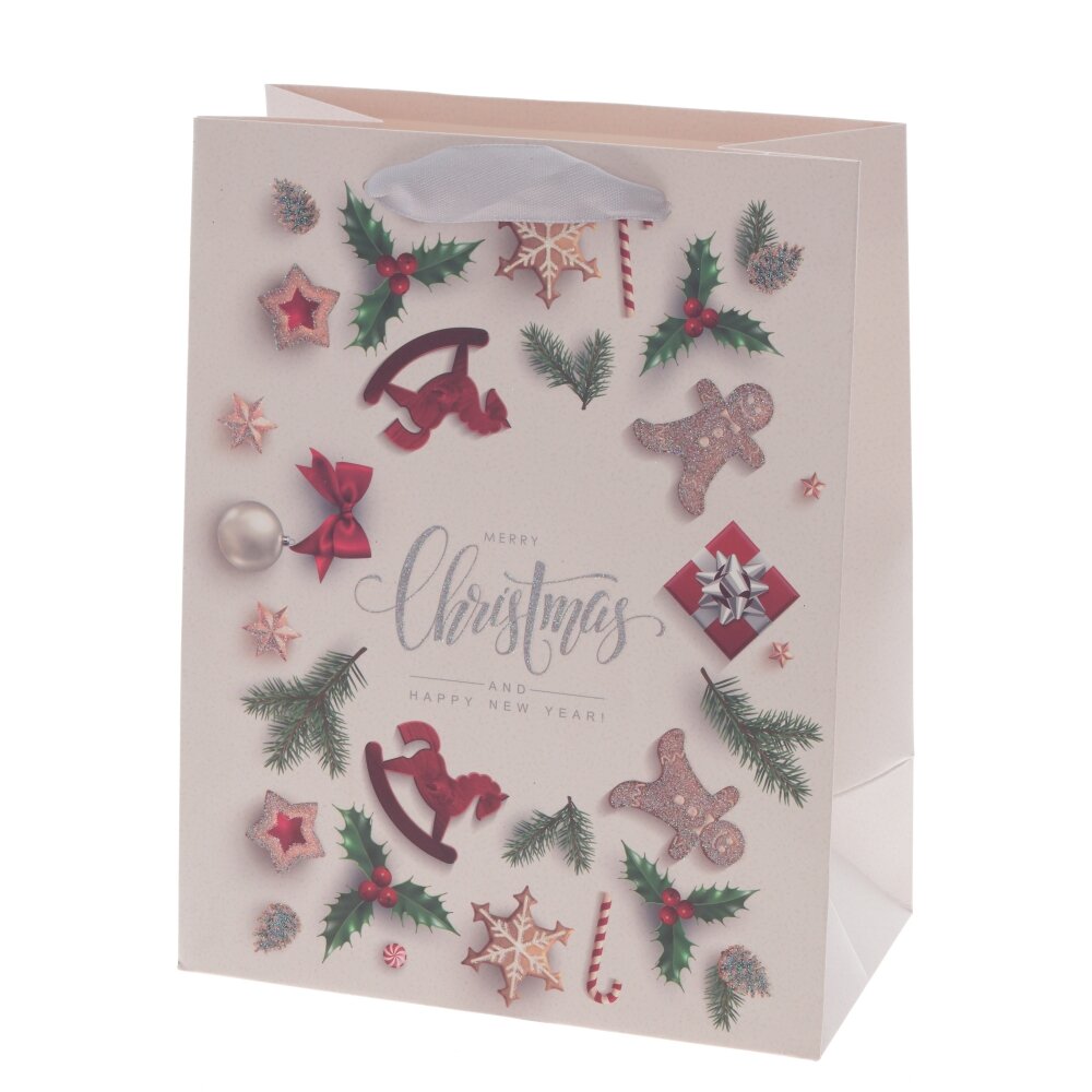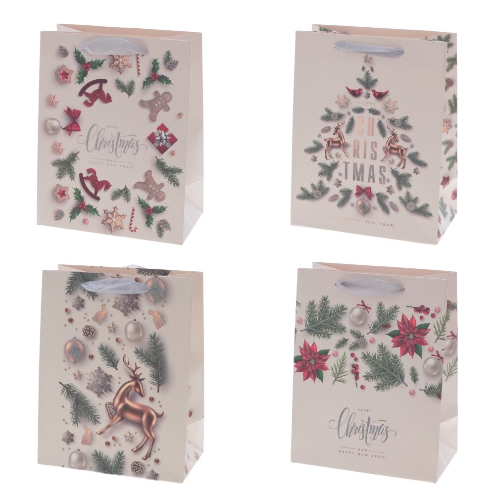 Пакет подарочный (бумага, плотность 210г/м2, блок микс 12шт), L18 W10 H23 см, 4в.