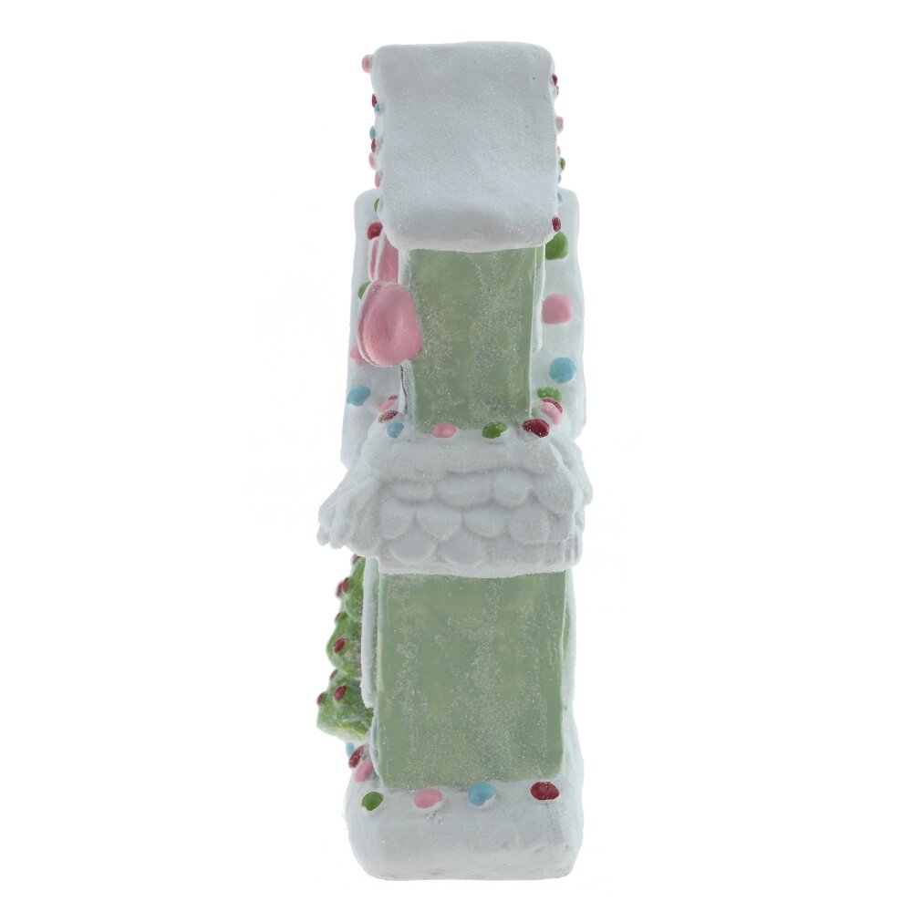 Декоративная фигурка “Домик” - это очаровательный пряничный домик-теремок, выполненный из полимерной глины в нежных салатово-белых тонах. Украшенный разноцветными леденцами и блестками, имитирующими снежный блеск, он создает атмосферу волшебства и праздника. Этот домик станет идеальным украшением сладкого стола в новогодние и рождественские праздники, добавляя в атмосферу дома уют и сказочное настроение.