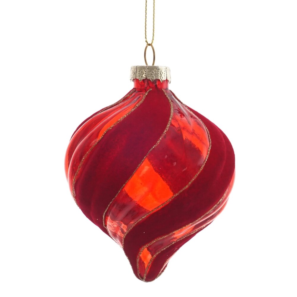 Украшение новогоднее капля, l8 w8 h11 см. Материал: Стекло Элегантное елочное украшение из стекла представляет собой каплю-луковку, где красная прозрачная линия переплетается с бархатной, образуя красивую спираль, разделенную тонкими золотыми полосками. На вершине украшения расположен золотой колпачек с петелькой и нитью для подвеса, что позволяет легко добавить его к украшению елочной ветки, придавая праздничное настроение и изысканный вид вашему интерьеру. Вес, кг: 0. 029