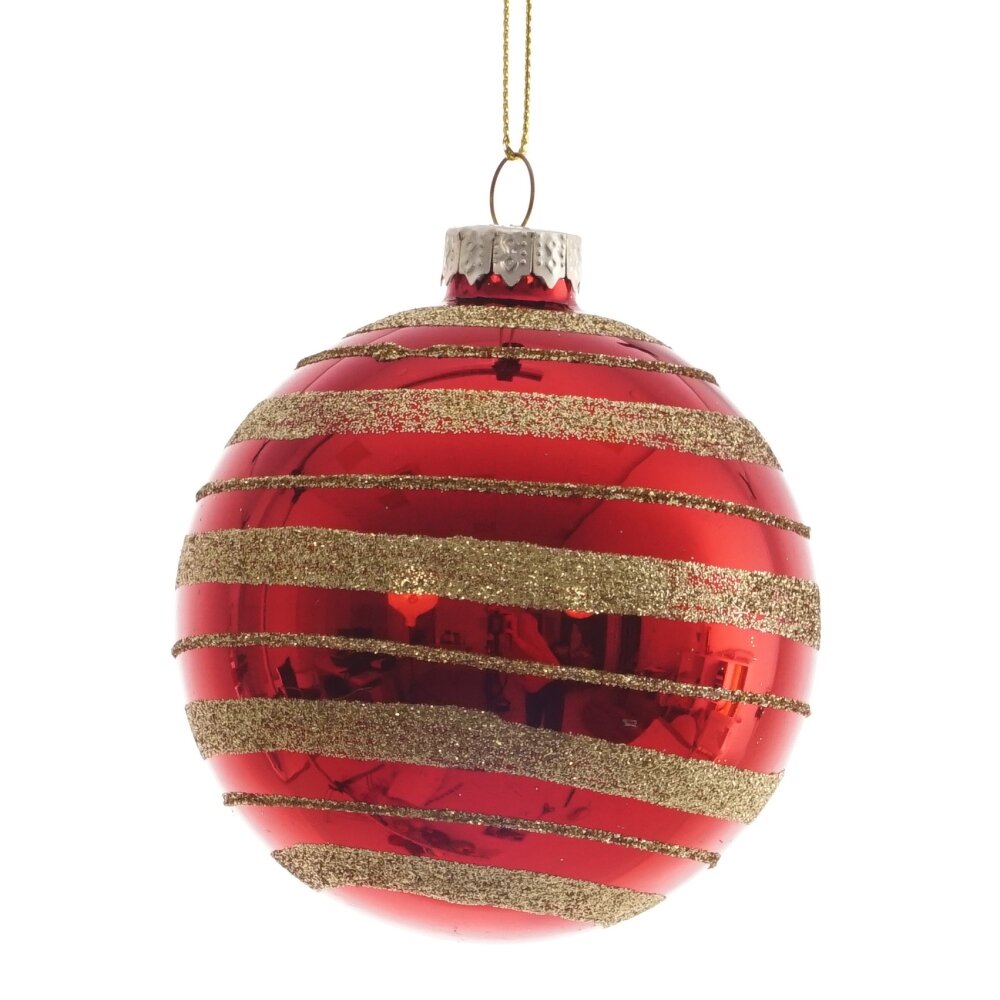 Украшение новогоднее шар, l8 w8 h10 см. Материал: Стекло Новогоднее украшение Шар — это классическое елочное украшение, которое привносит в интерьер атмосферу тепла и уюта. Выполненный в ярком красном цвете, этот шар украшен нежными золотыми полосами из глиттера, которые переливаются при любом свете, создавая праздничное настроение. Его элегантный дизайн прекрасно сочетается с другими элементами декора, добавляя яркости и стиля. Такой шар станет безусловным акцентом на вашей ёлке, подчеркивая красоту новогоднего праздника. Вес, кг: 0. 031