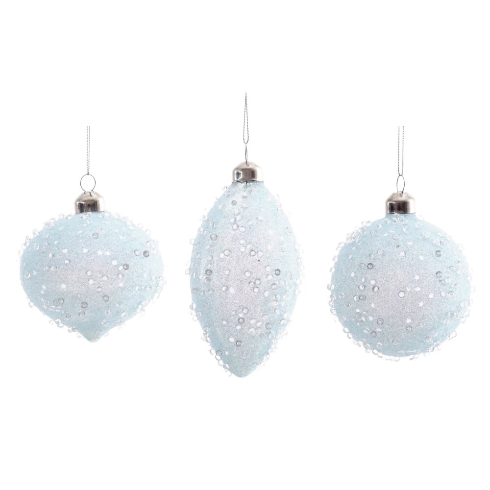 Украшение новогоднее шар/капля/сосулька, l6 w6 h13,5 см, 3в.. Материал: Стекло Новогоднее украшение представлено в трех видах - шар, капля и сосулька и изготовлено из тонкого и прочного стекла, что делает его легким и удобным для подвешивания на елку. Благодаря специальной технике исполнения и декору в виде имитации кристаллов льда, изделие красиво переливается на свету. Данное украшение будет прекрасно смотреться на елках любого стиля, придавая им ощущение волшебства и зимней красоты. Вес, кг: 0. 046