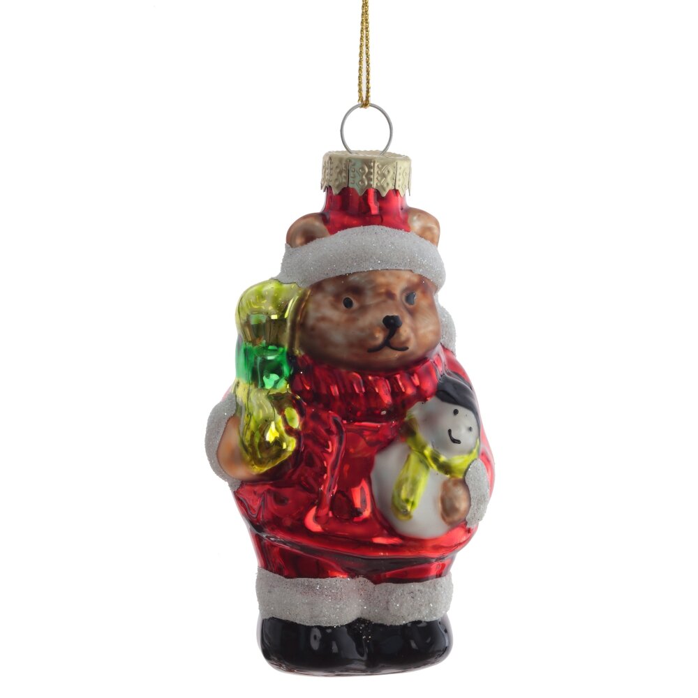 Украшение новогоднее медвежонок, l5 w4 h10 см. Материал: Стекло Новогоднее украшение Медвежонок изготовлено из стекла, в виде миниатюрного медвежонка, одетого в яркий новогодний костюм Деда Мороза. Эта милая и стильная подвеска станет идеальным украшением для новогоднего декора. Её можно не только подвесить на елку, но и сделать частью новогодней композиции. Вес, кг: 0. 025