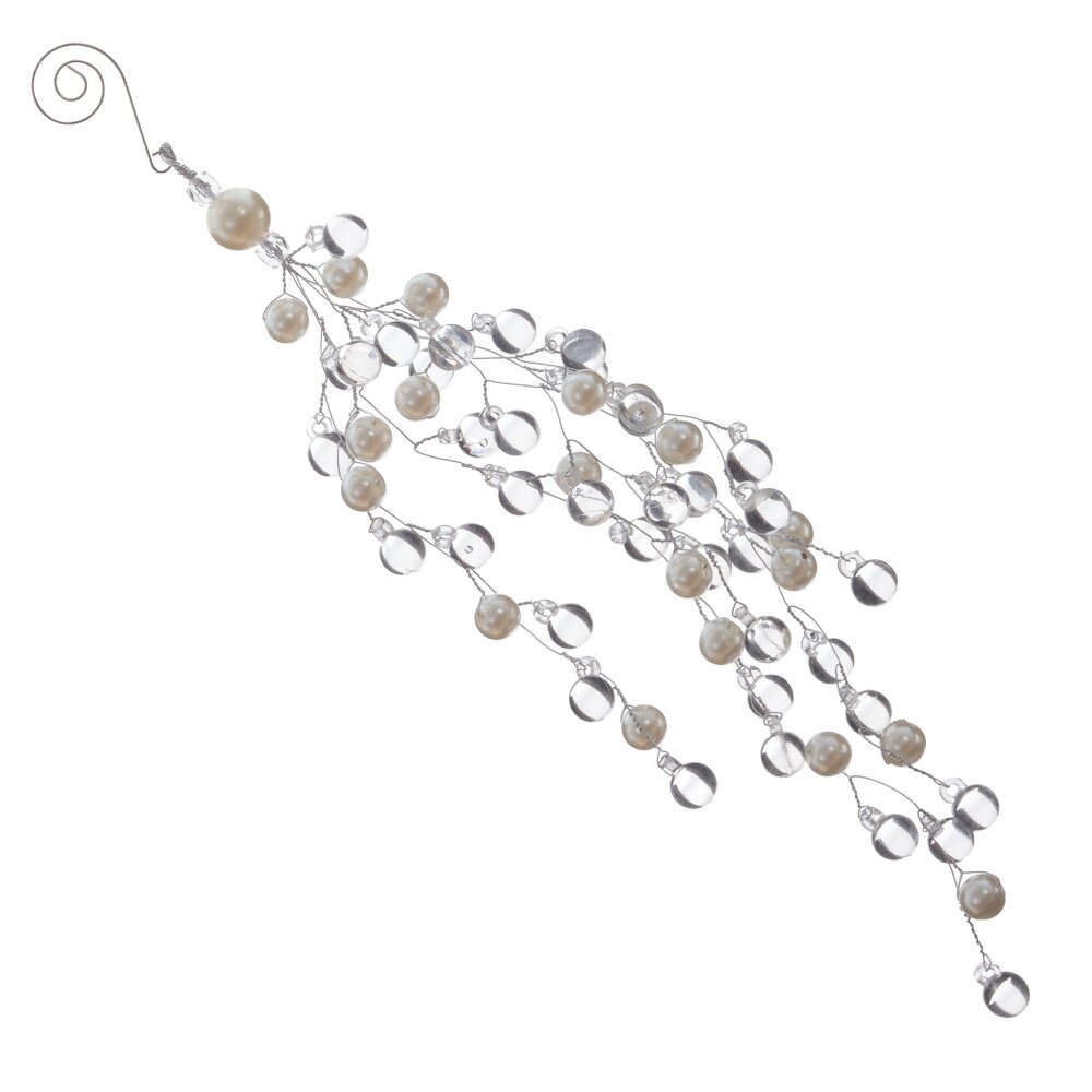 Изделие декоративное ветка, l3 w3 h30 см. Материал: Полимерные материалы/Металл Красивое новогоднее украшение ветка выполнено из тонкой проволоки с удобной петелькой для подвешивания. На ветке расположены прозрачные и жемчужные бусины, которые мерцают и переливаются на свету, создавая волшебную атмосферу праздника и добавляя нежности и изыска в декоре. Украсьте елку, камин или любую другую поверхность этой изящной веткой и наслаждайтесь праздничным блеском! Вес, кг: 0. 037