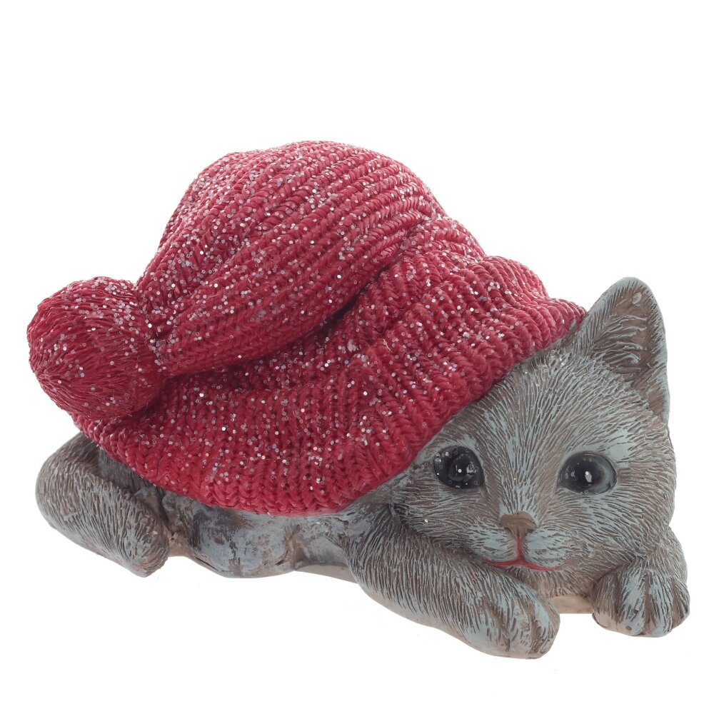 Фигурка декоративная Котёнок из полистоуна - это очаровательный серый котенок под красной вязанной шапочкой. Фигурка покрыта блестящим глиттером, что придает ей снежного сияния. Отличная детализация передает каждую черту, и фигурку хочется рассматривать снова и снова.   Поместите эту фигурку на полку, стол или камин, чтобы оживить ваш интерьер новогодними волшебством! Представлена в двух вариантах.