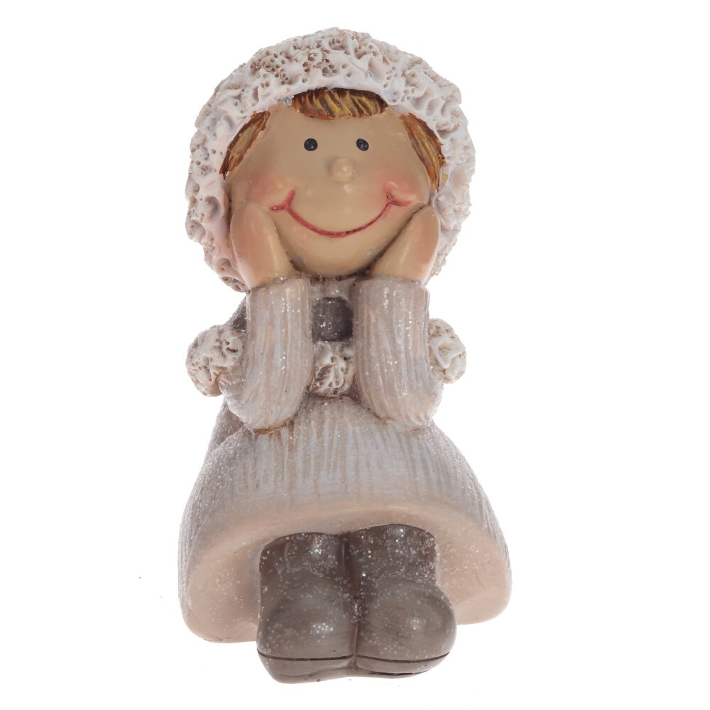 Декоративная фигурка Девочка выполнена из полистоуна и изображает улыбающуюся девочку в зимней одежде. Фигурка доступна в двух вариантах: одна девочка сидит, подперев лицо руками, другая – облокотившись на колени. Эти декоративные украшения идеально подходят для создания праздничного настроения и уюта в вашем доме в зимний сезон.