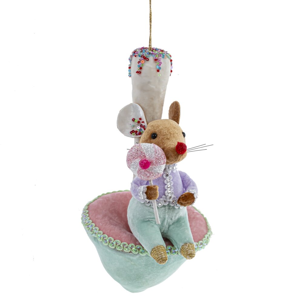 Декоративное подвесное изделие Мышка и гриб — это очаровательное украшение, выполненное из легкого пенопласта и обтянутое бархатной тканью. Мышка с симпатичным красным носиком и изящным розовым нарядом сидит на грибочке, который подвешивается шляпкой вниз. Нежные пастельные тона и стильные детали создают атмосферу праздника и радости. Это декоративное украшение станет ярким акцентом в любом интерьере и прекрасно дополнит новогодний декор, вызывая улыбку у всех, кто её увидит.